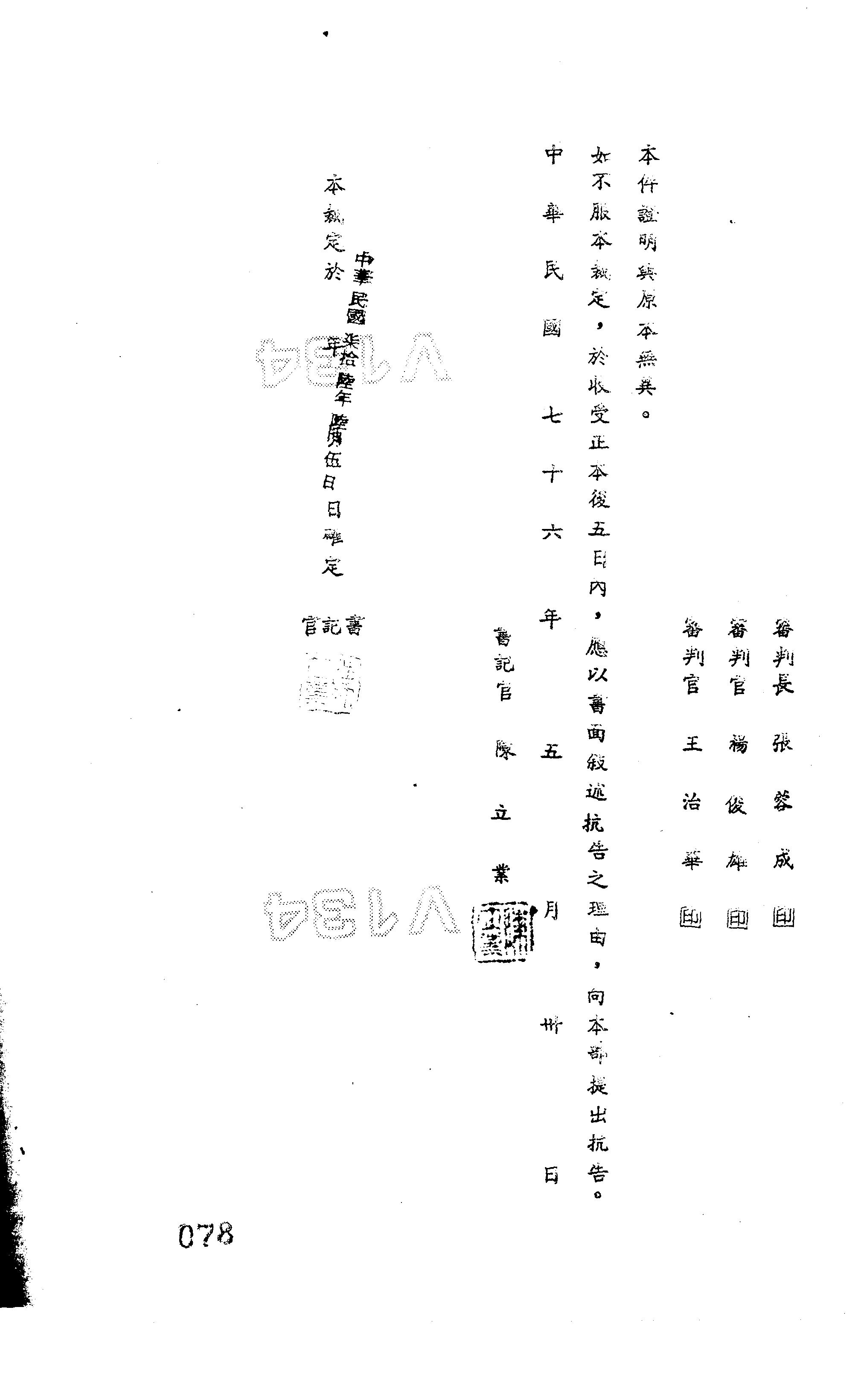 裁判書字號:(76)珠裁字第0046號