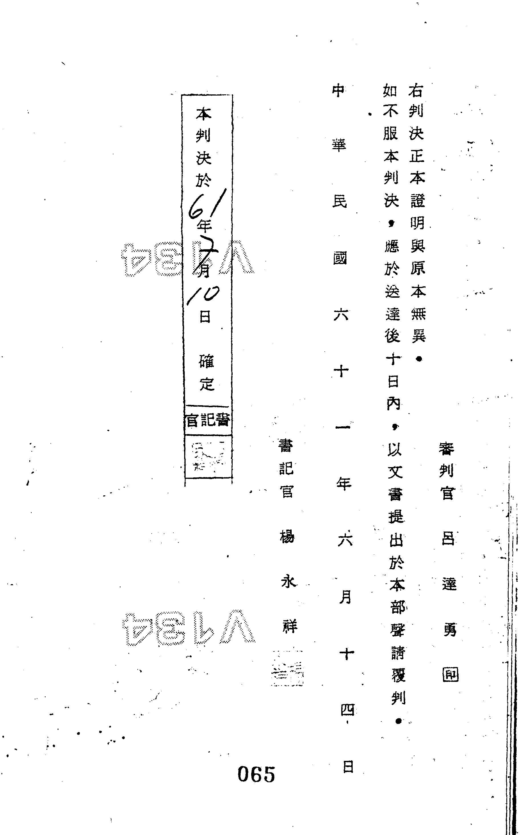 裁判書字號:(61)更字第0014號/(61)秤理字第3726號