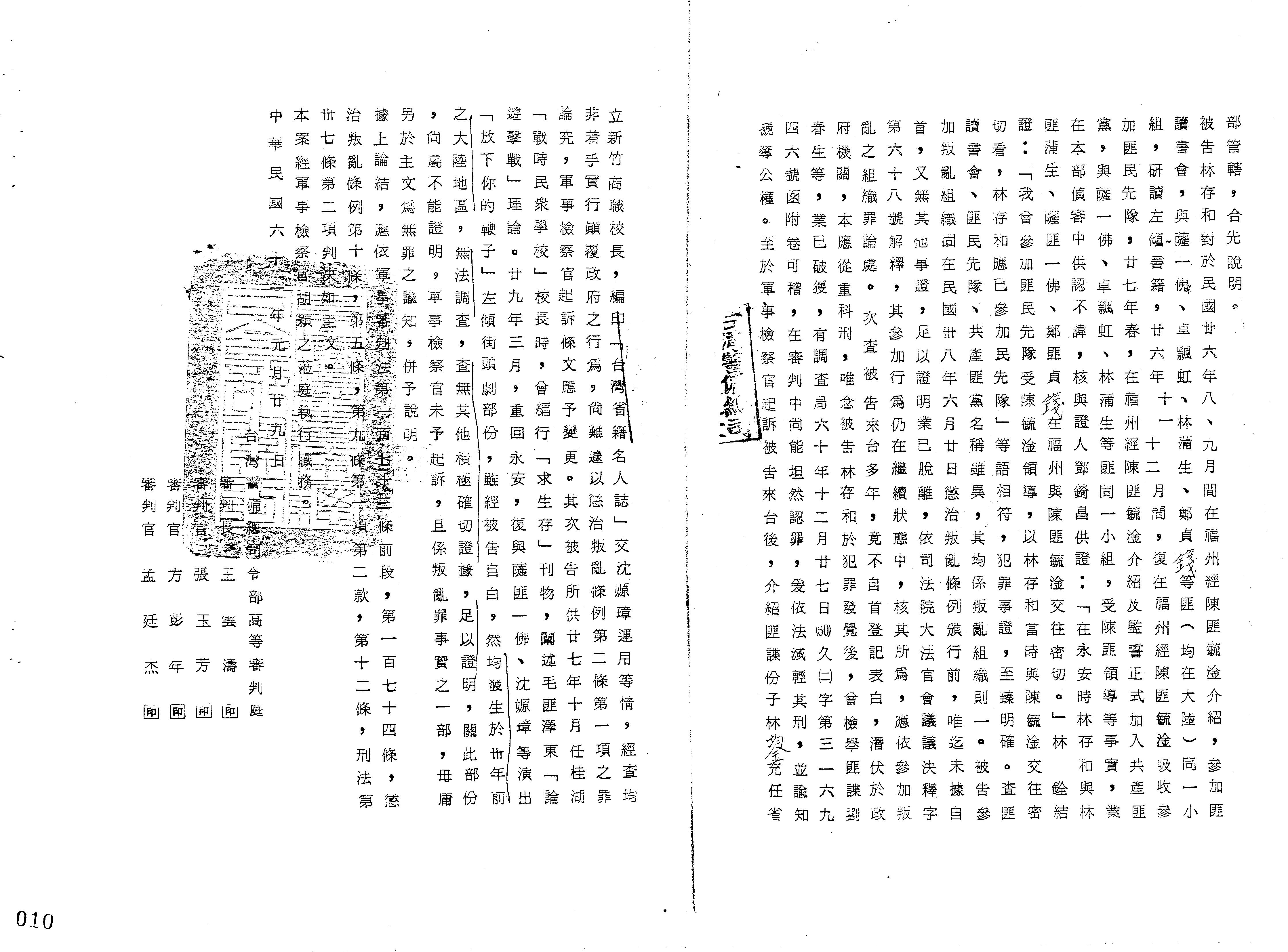 法條:軍事審判法第173條前段、第174條;懲治叛亂條例第10條、第5條、第9條第1項第2款、第12條;刑法第37條第2項。