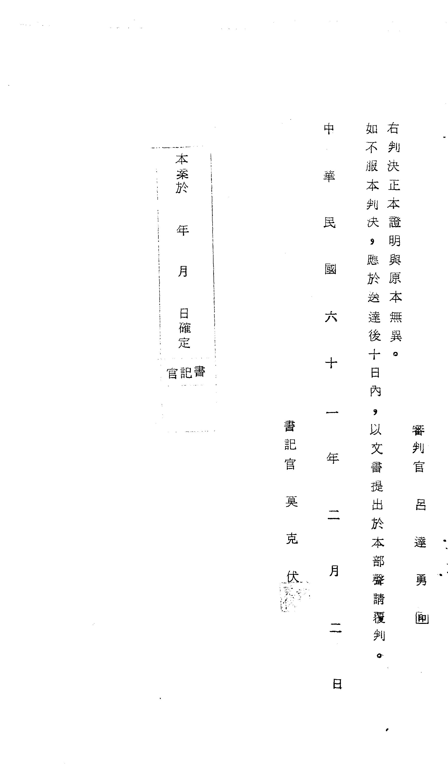 裁判書字號:(61)初特字第0022號/(61)秤理字第0628號