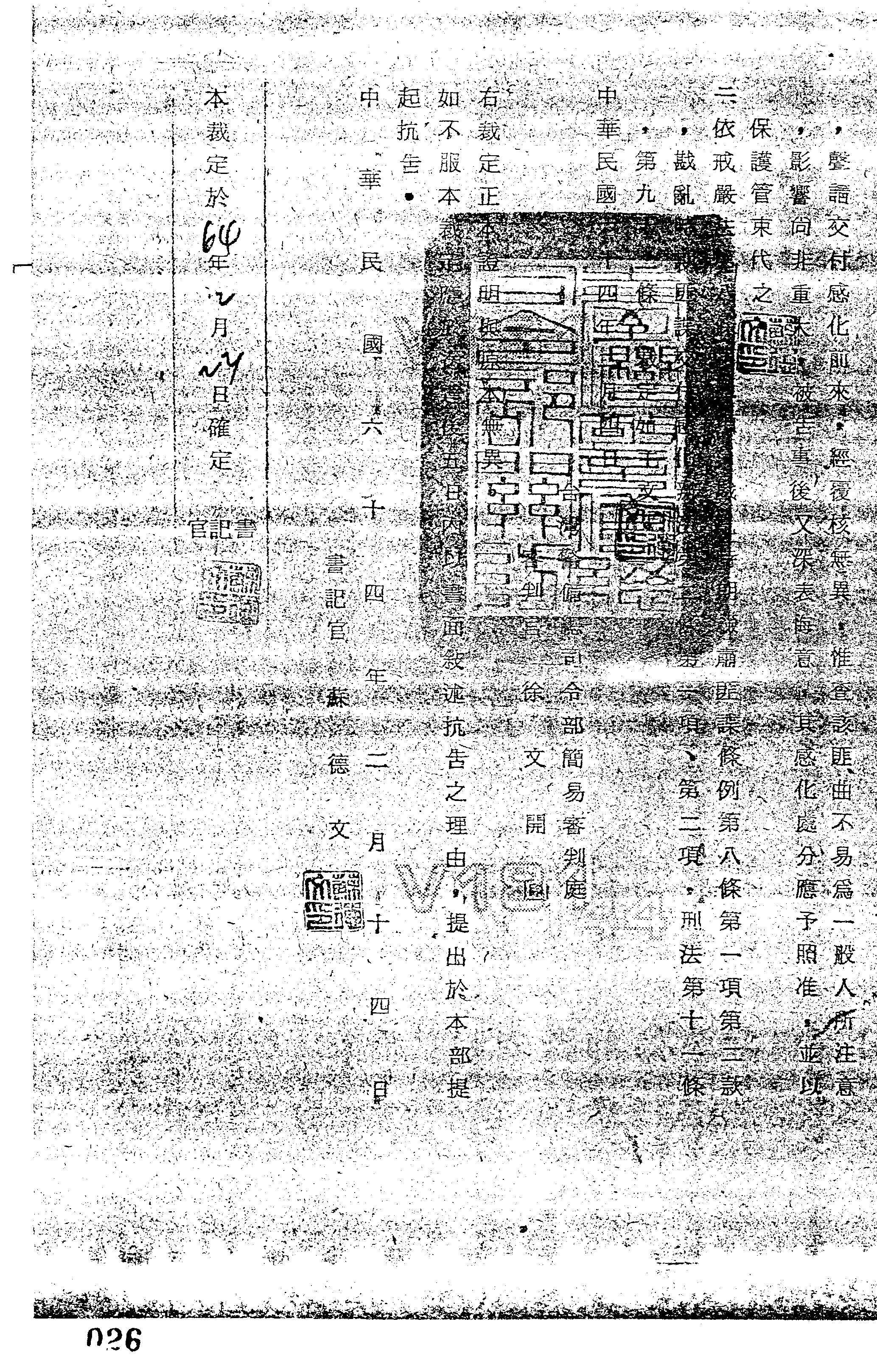 臺灣警備總司令部64年裁化字第0001號裁定書
