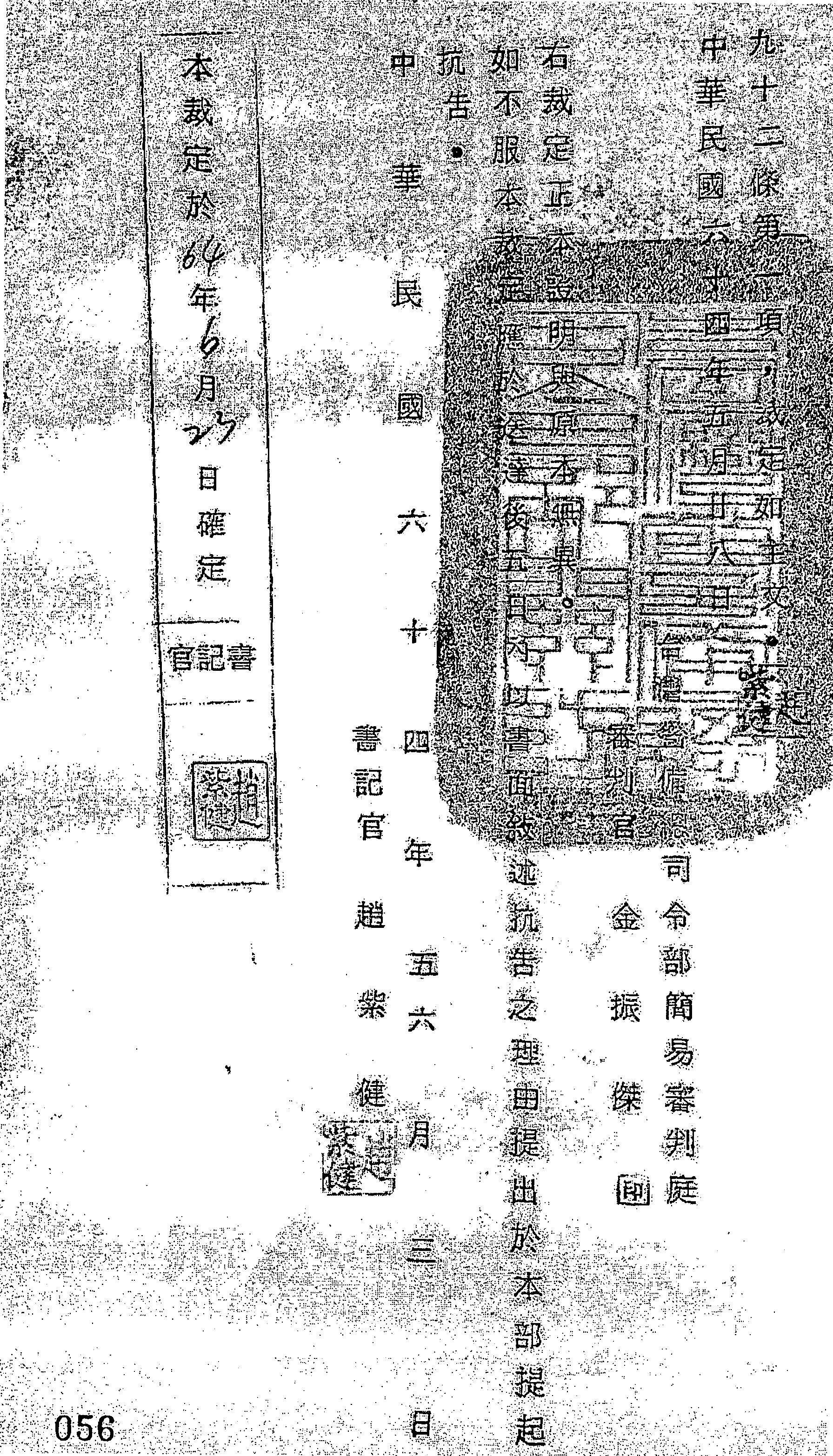 臺灣警備總司令部64年裁化字第0004號裁定書