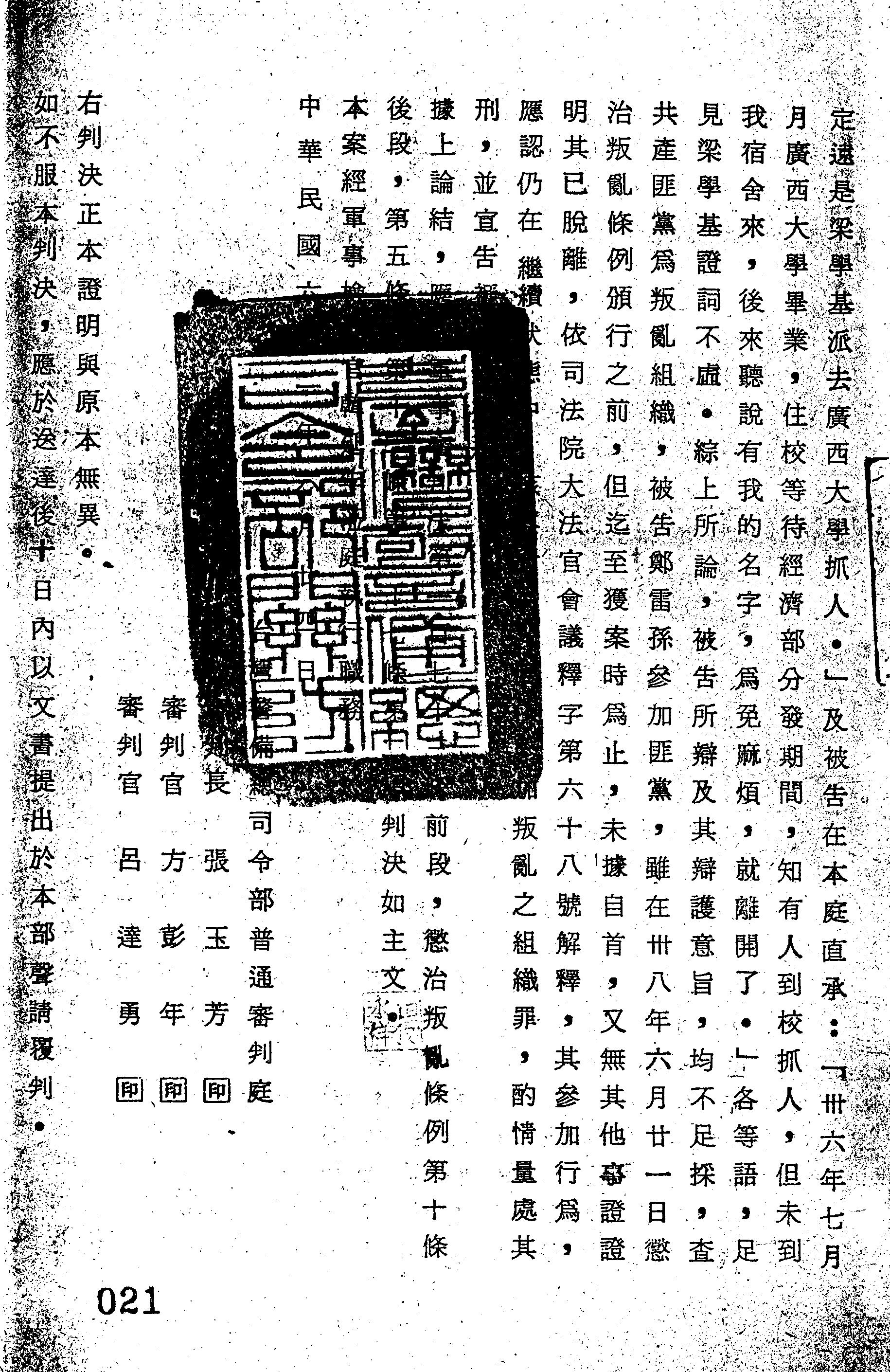 法條:軍事審判法第173條前段;懲治叛亂條例第10條後段、第5條、第12條、第37條第2項