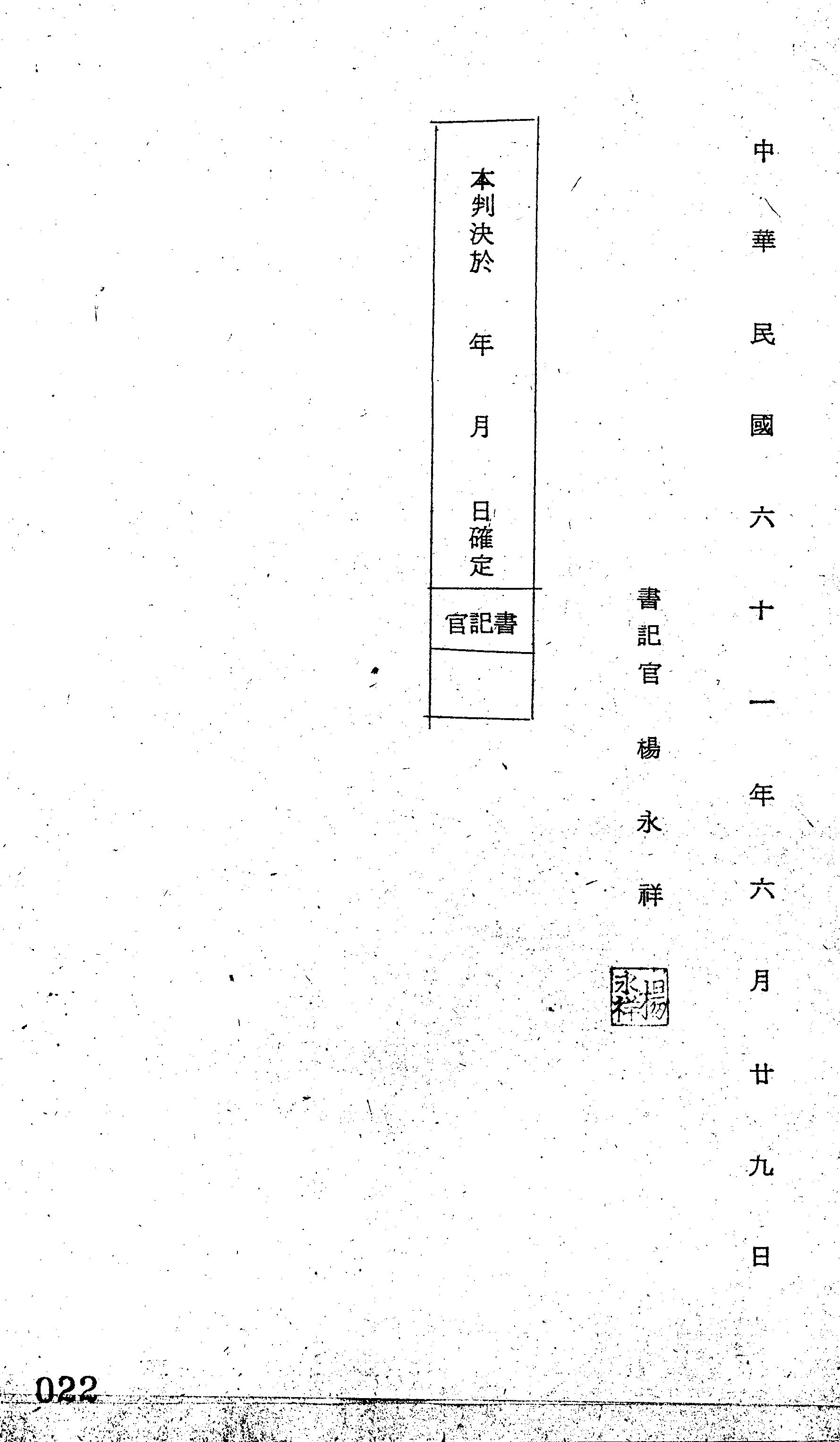 裁判書字號:(61)初特字第0055號/(61)秤理字第4006號