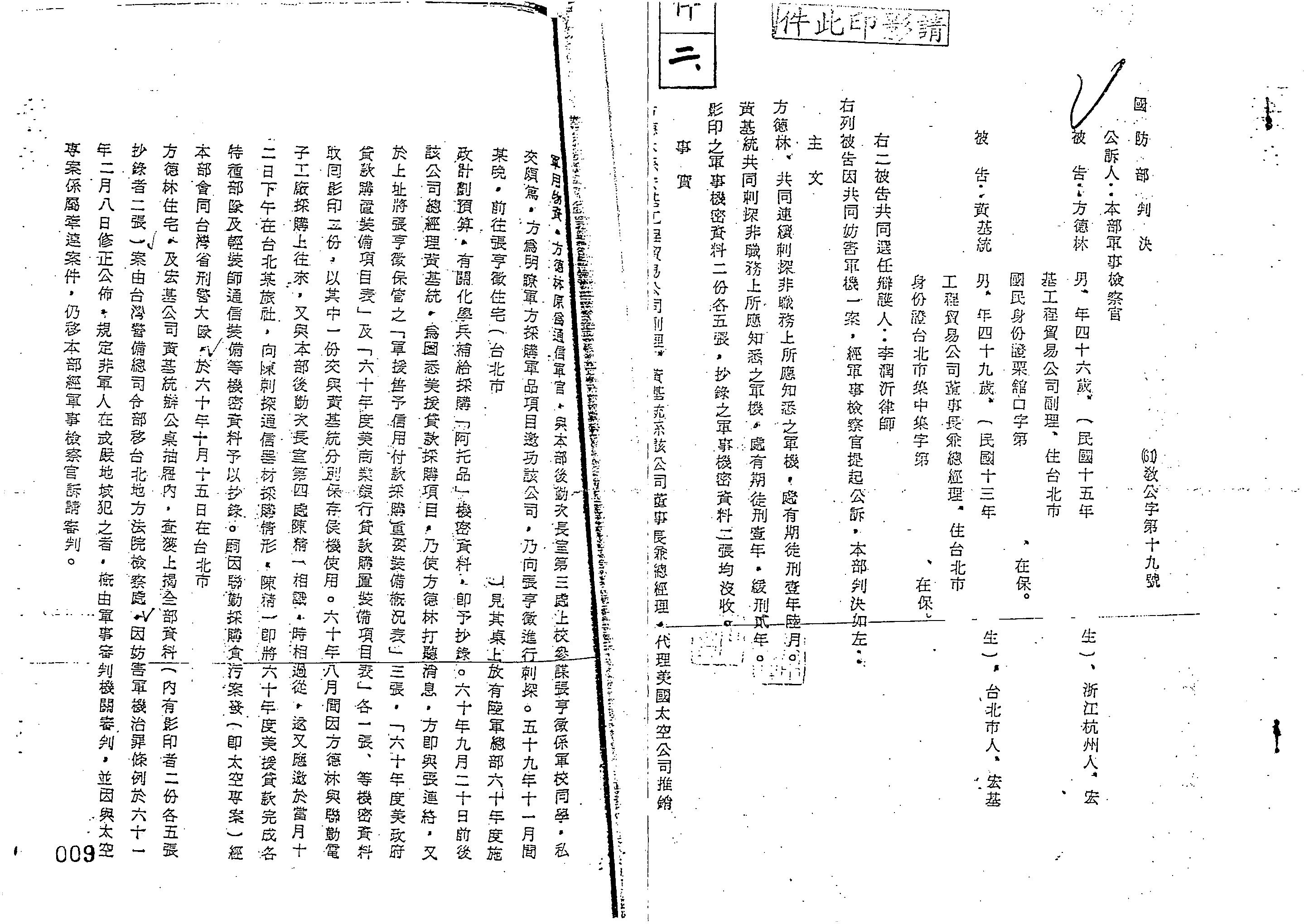 - 裁判書正題名: 國防部61年教公字第0019號判決書