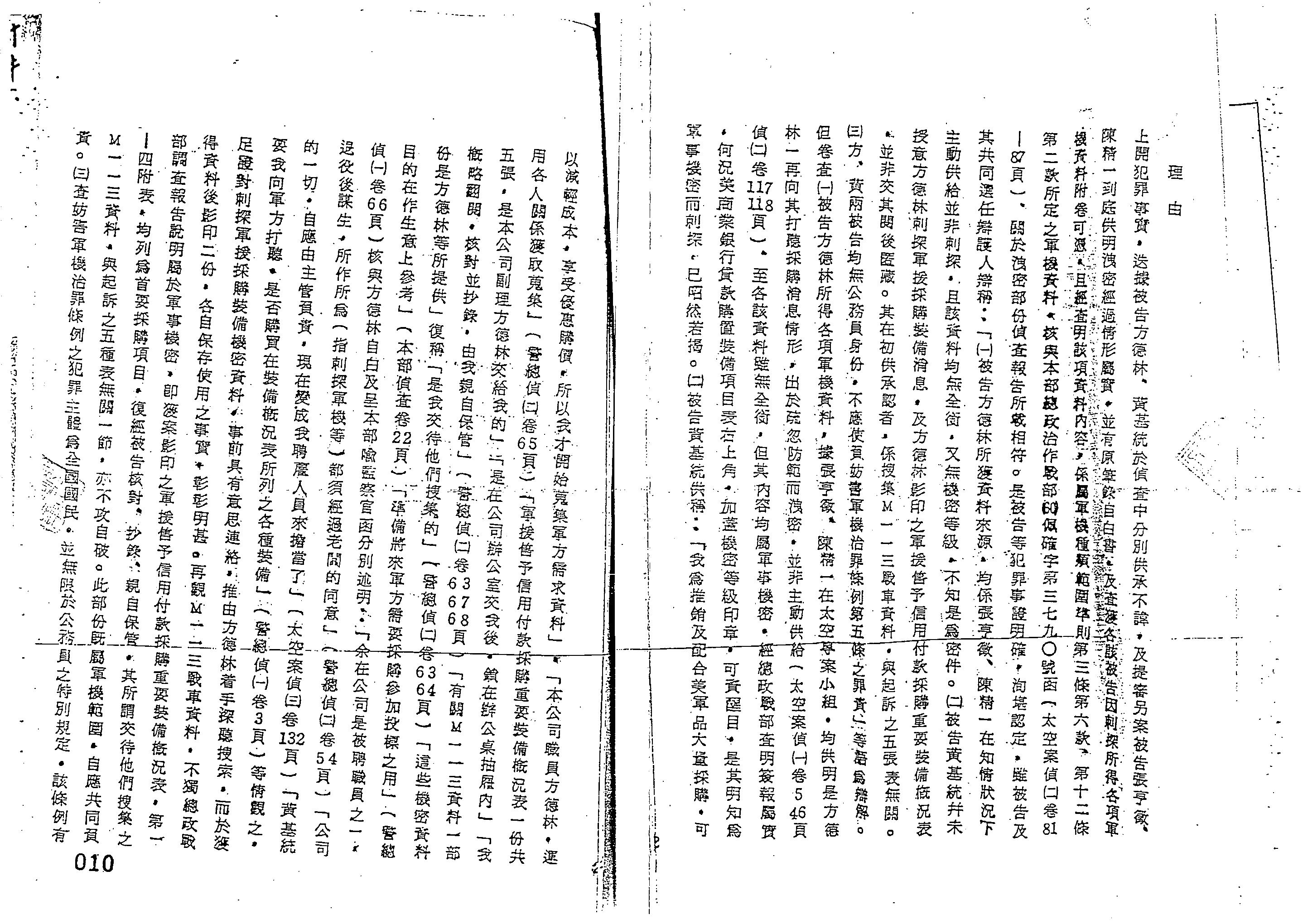- 法條:軍事審判法第173條前段;妨害軍機治罪條例第5條、第10條但書、第11條;刑法第11條、第28條、第38條第1項第3款、第56條、第74條第1款