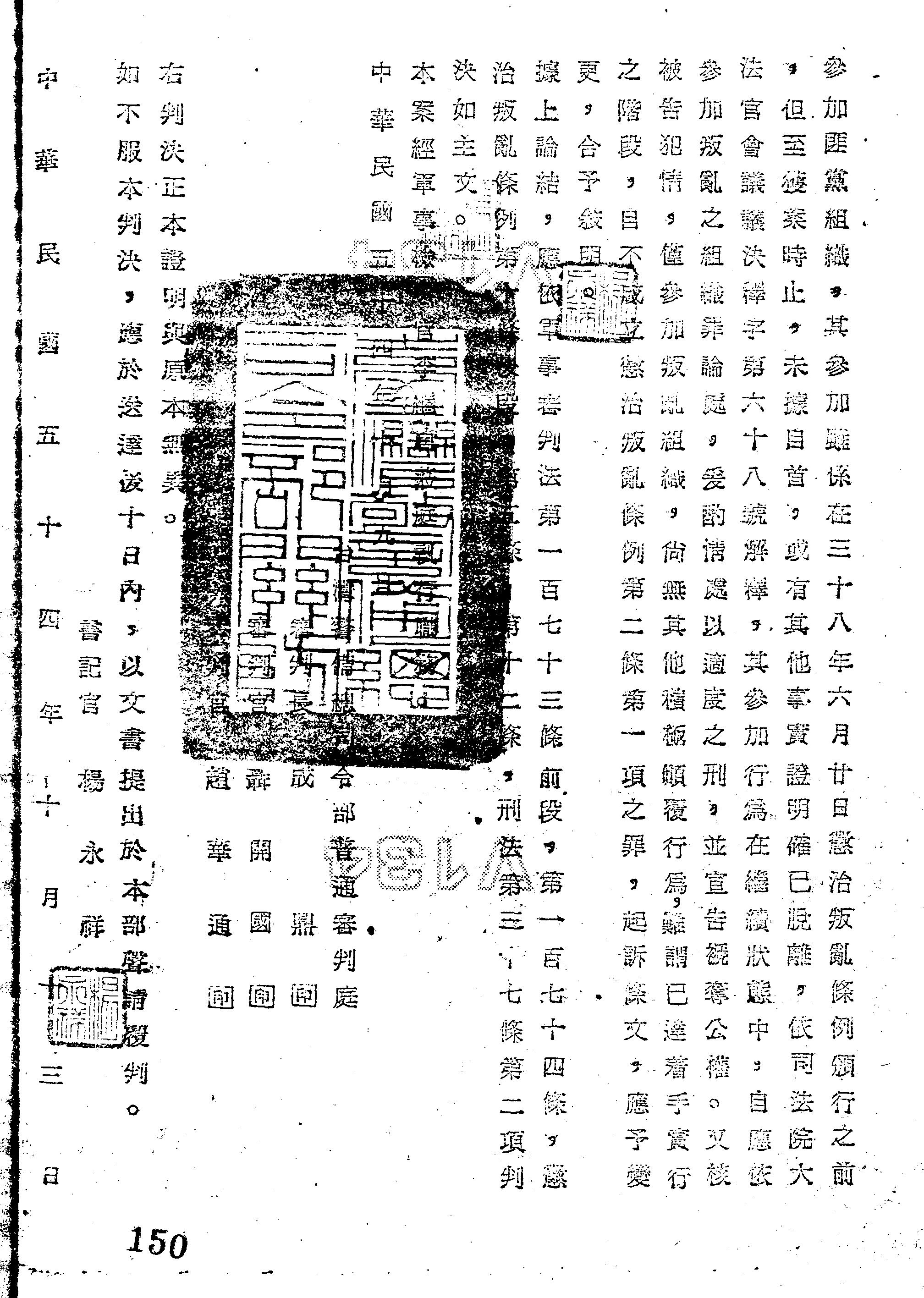 法條:軍事審判法第173條前段、第174條;懲治叛亂條例第10條、第5條、第12條;刑法第37條第2項