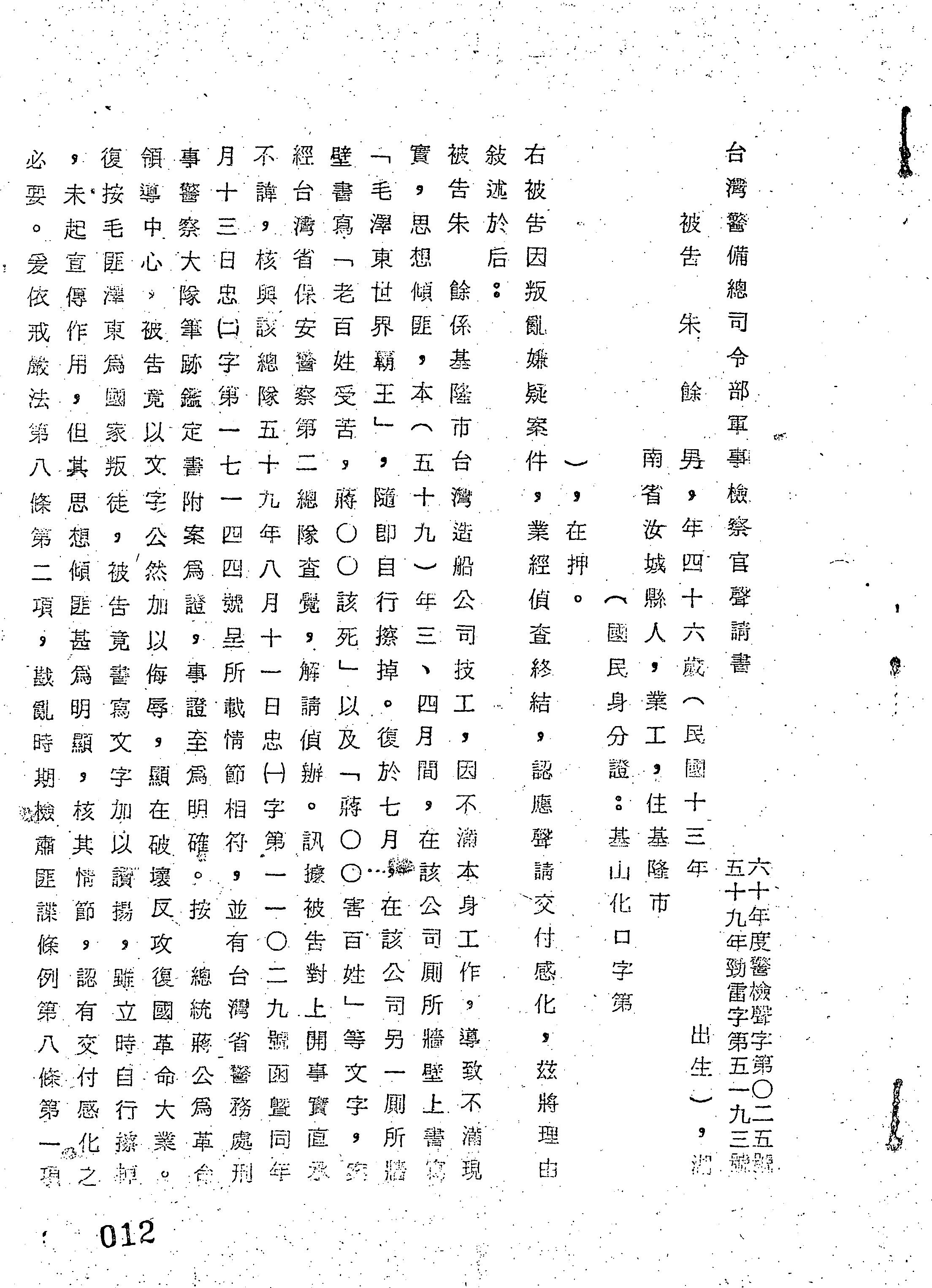 法條:戒嚴法第8條第2項;戡亂時期檢肅匪諜條例第8條第1項第2款