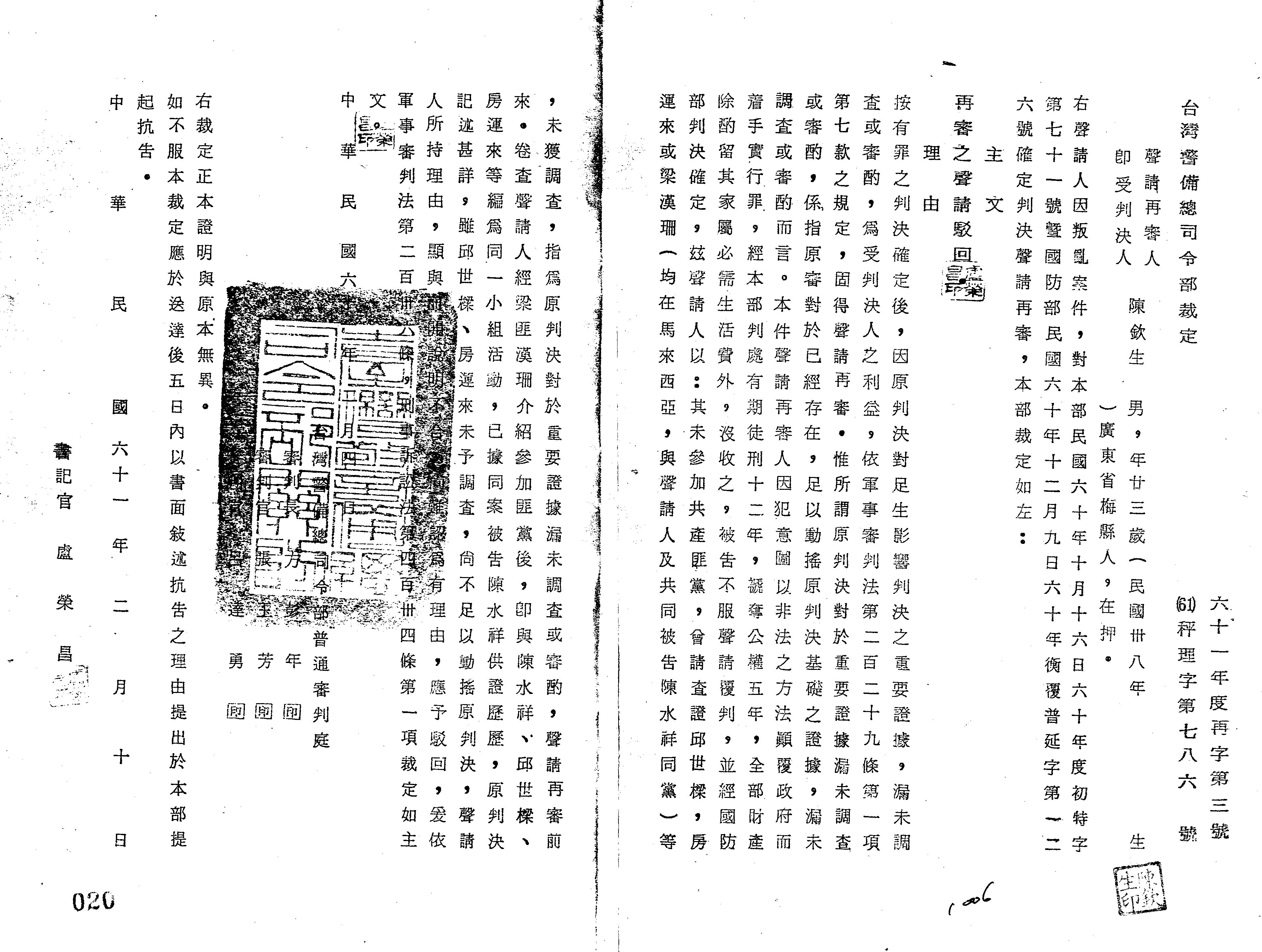 裁判書字號:(61)再字第0003號/(61)秤理字第0786號