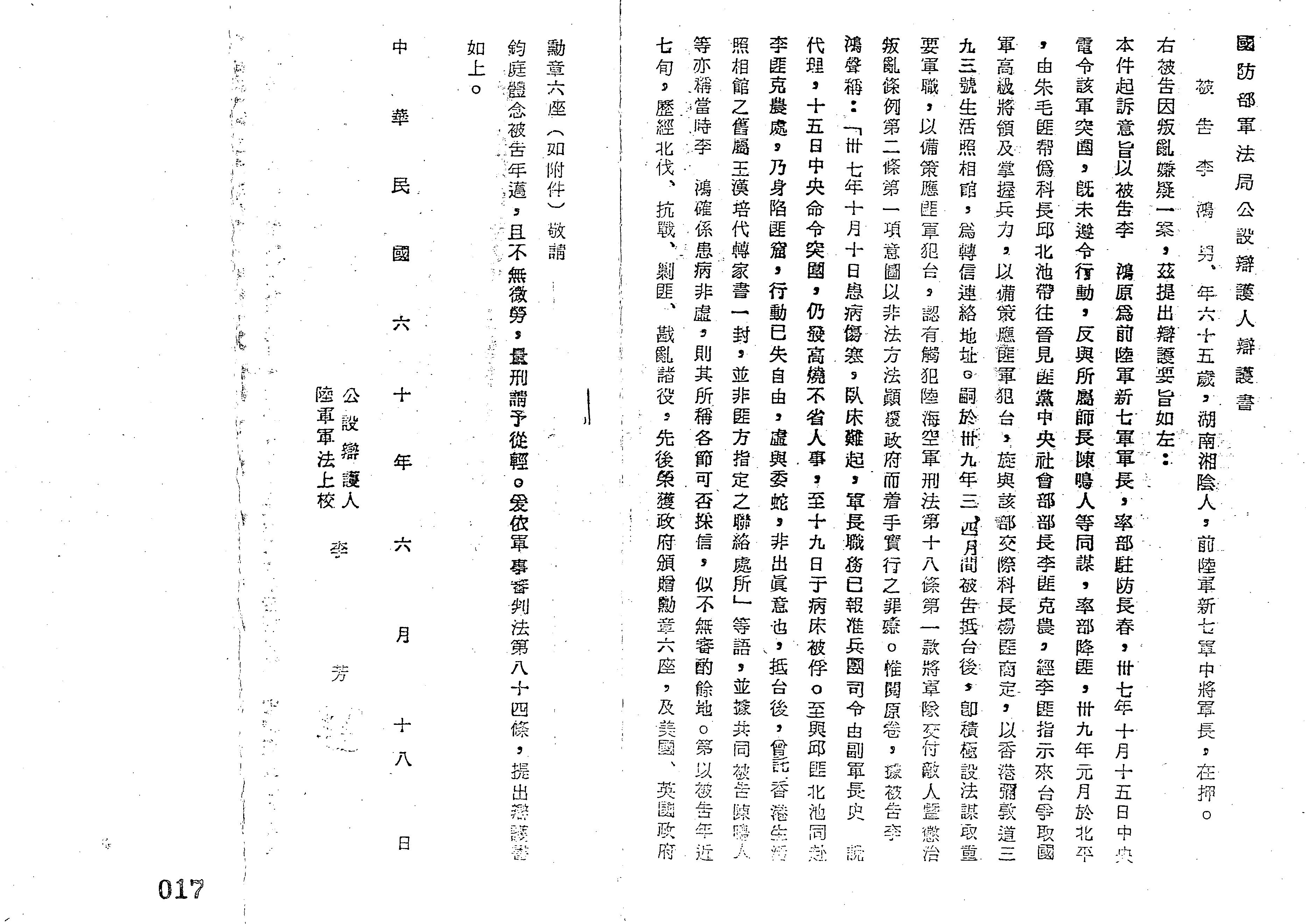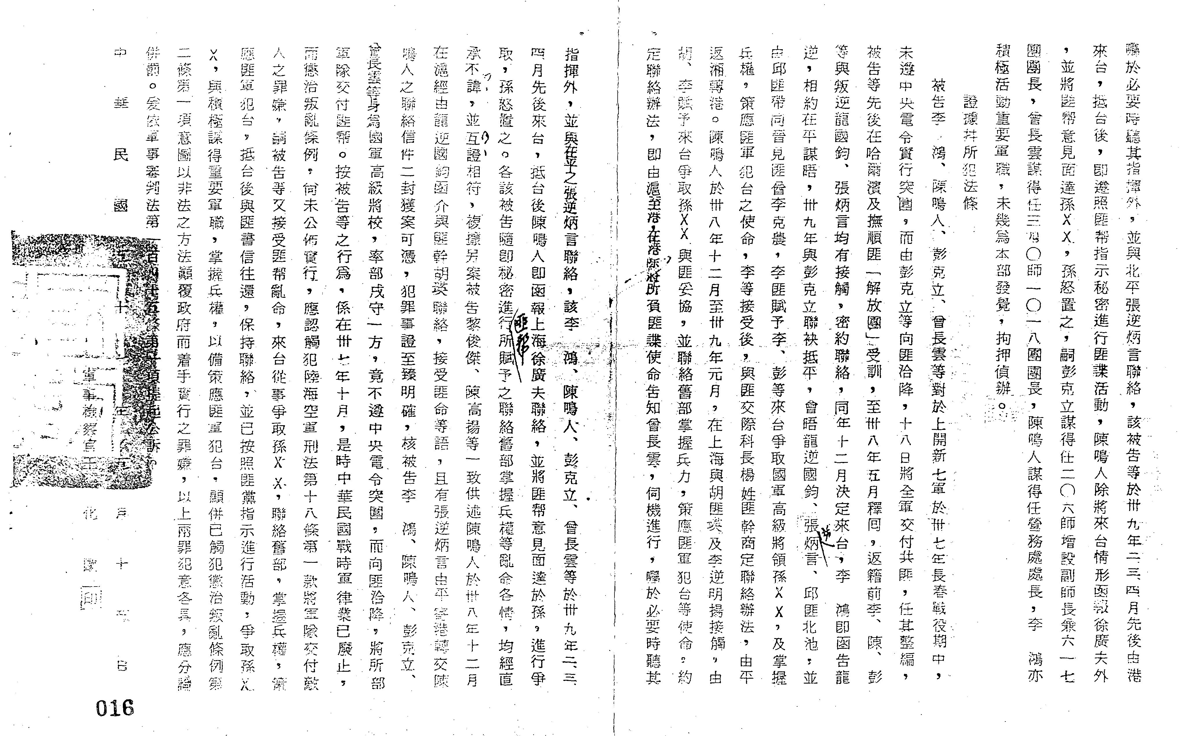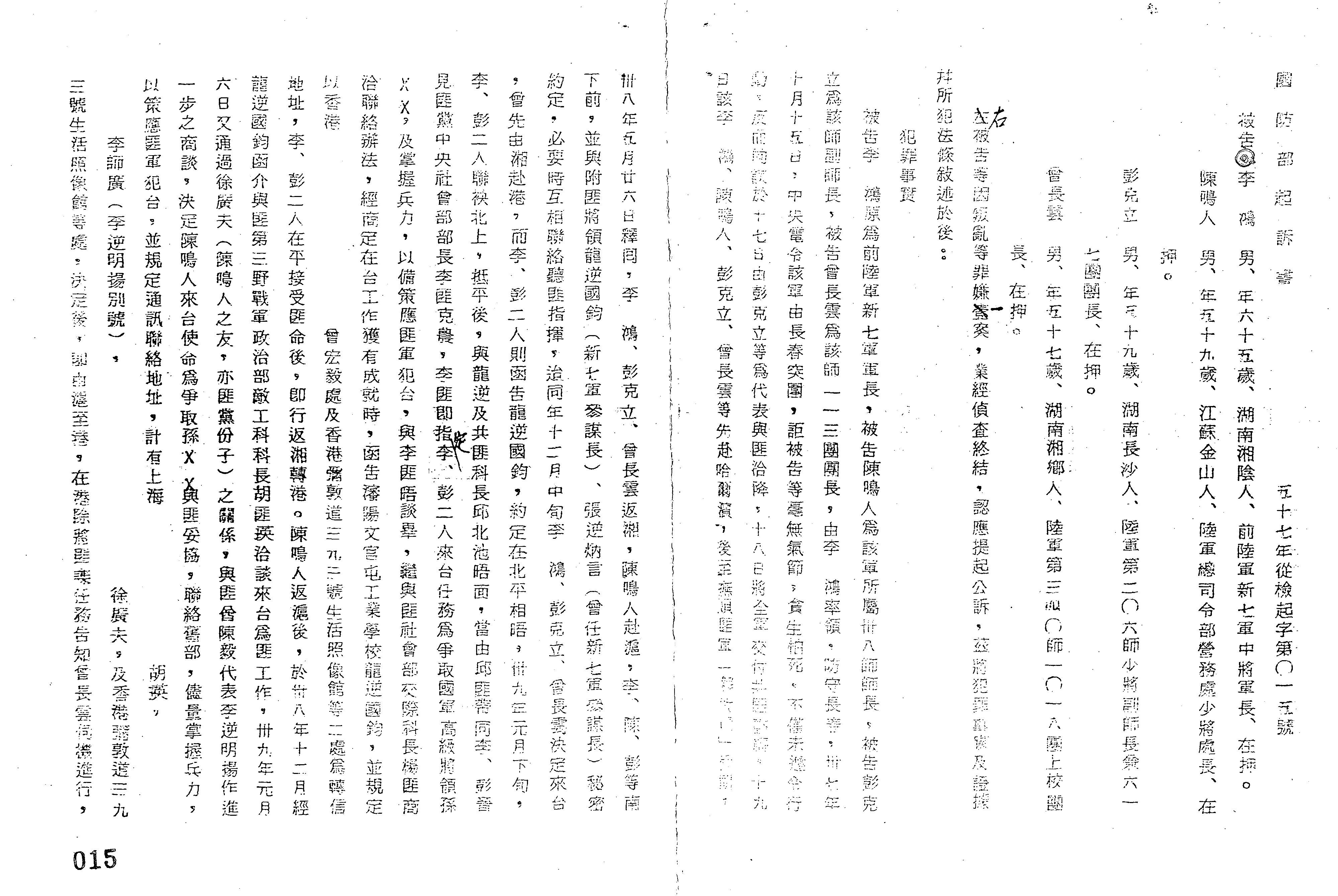 裁判書主文/要旨:李鴻等因叛亂等罪嫌一案業經偵查終結認應提起公訴。