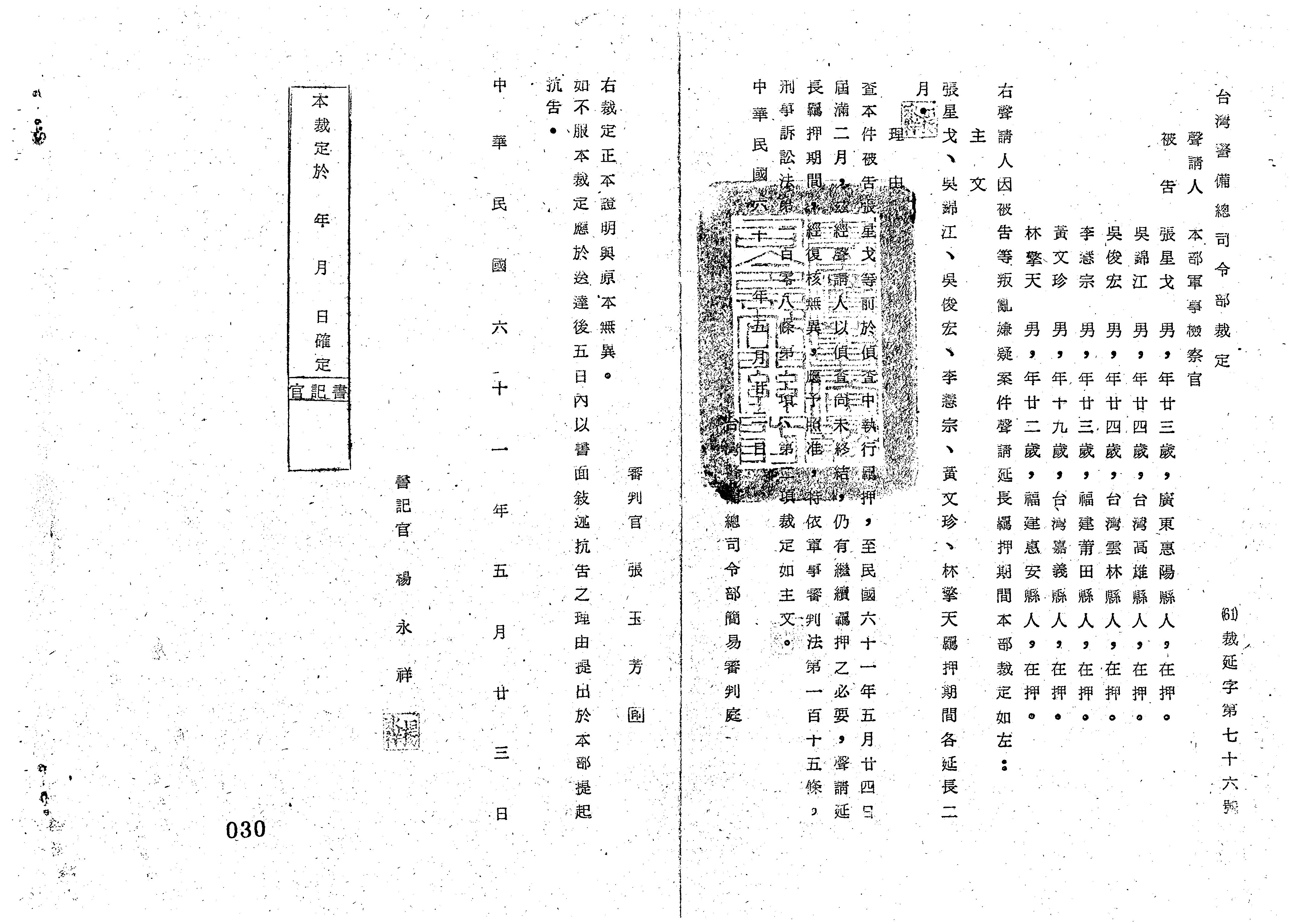 臺灣警備總司令部61年裁延字第0076號裁定書