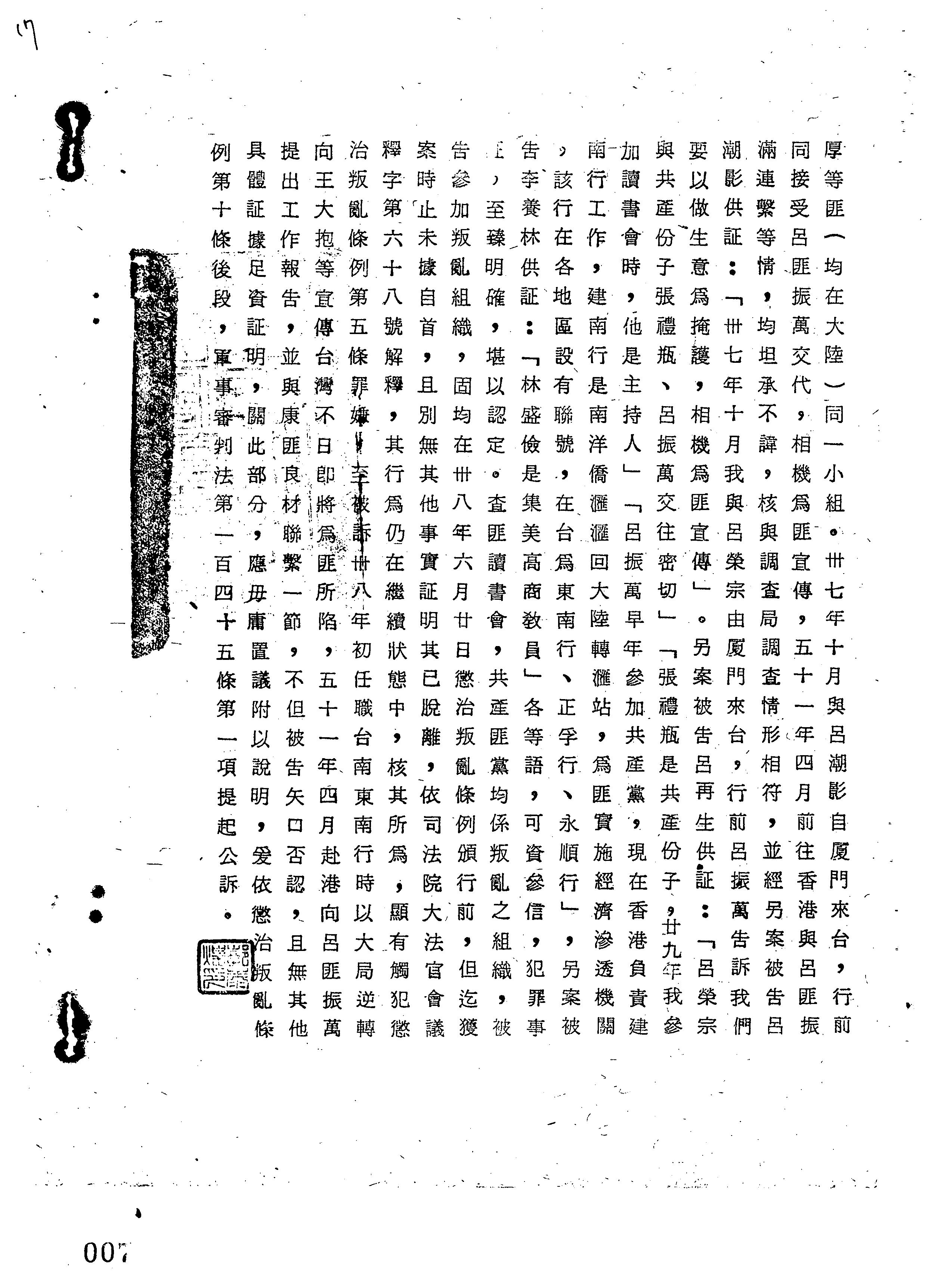 裁判書主文/要旨:呂榮宗因叛亂嫌疑案件業經偵查終結認應提起公訴。