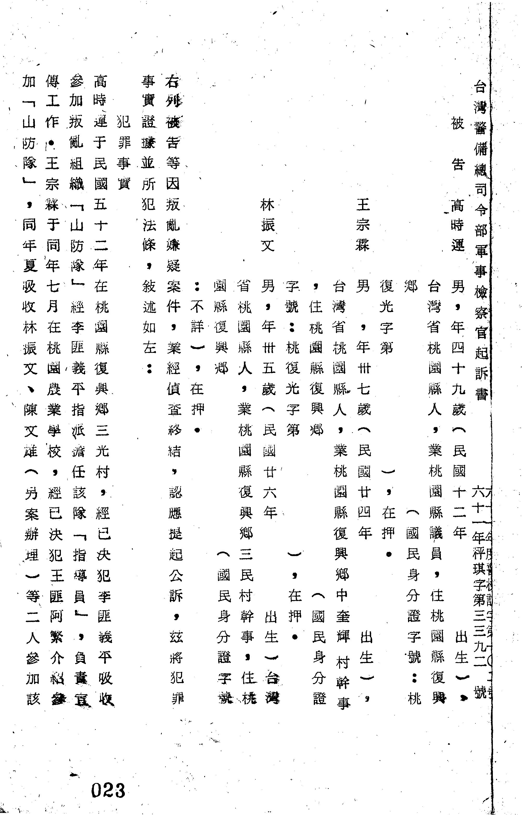 裁判書主文/要旨:高時運等因叛亂嫌疑案件業經偵查終結認應提起公訴。
