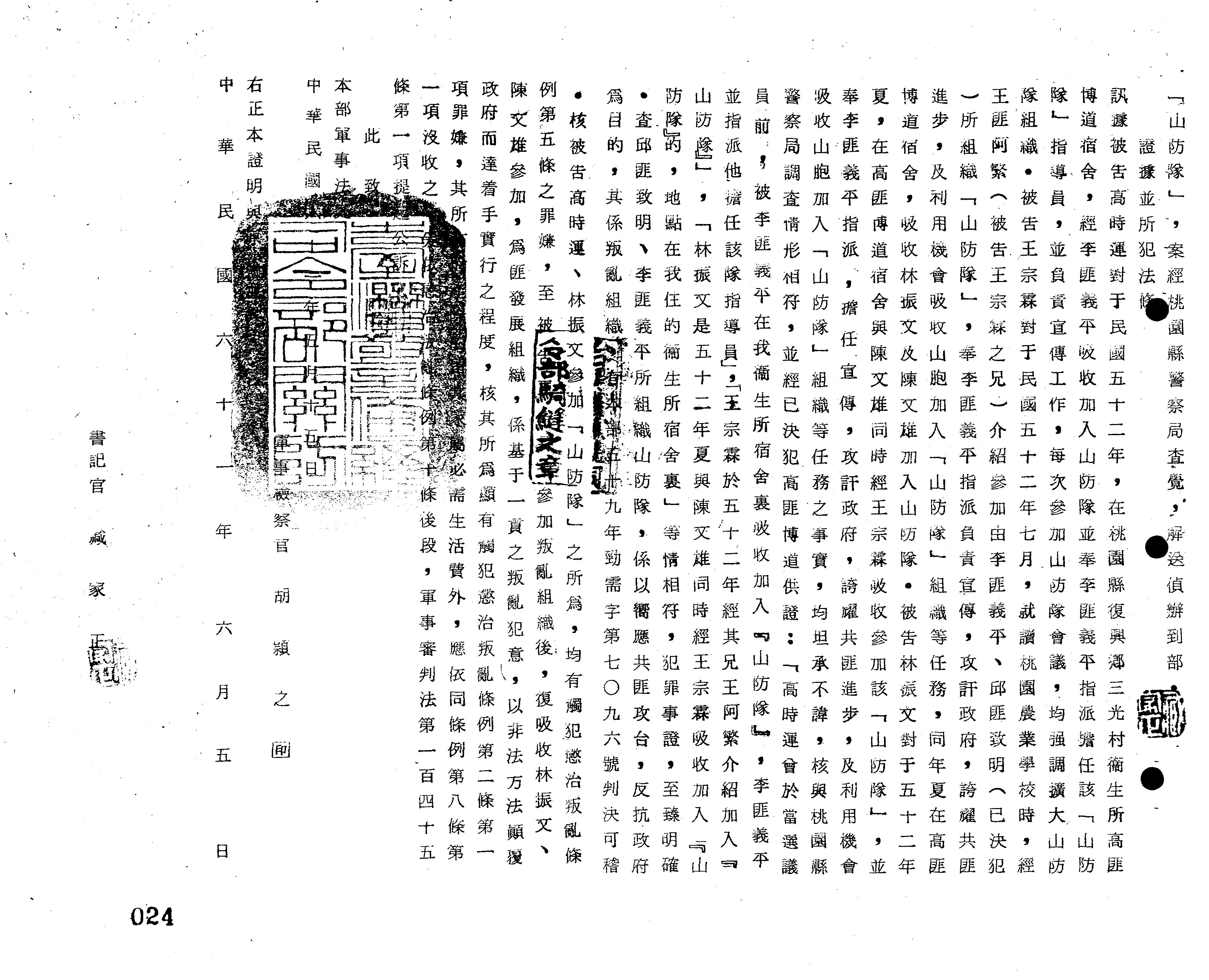 法條:懲治叛亂條例第10條後段;軍事審判法第145條第1項
