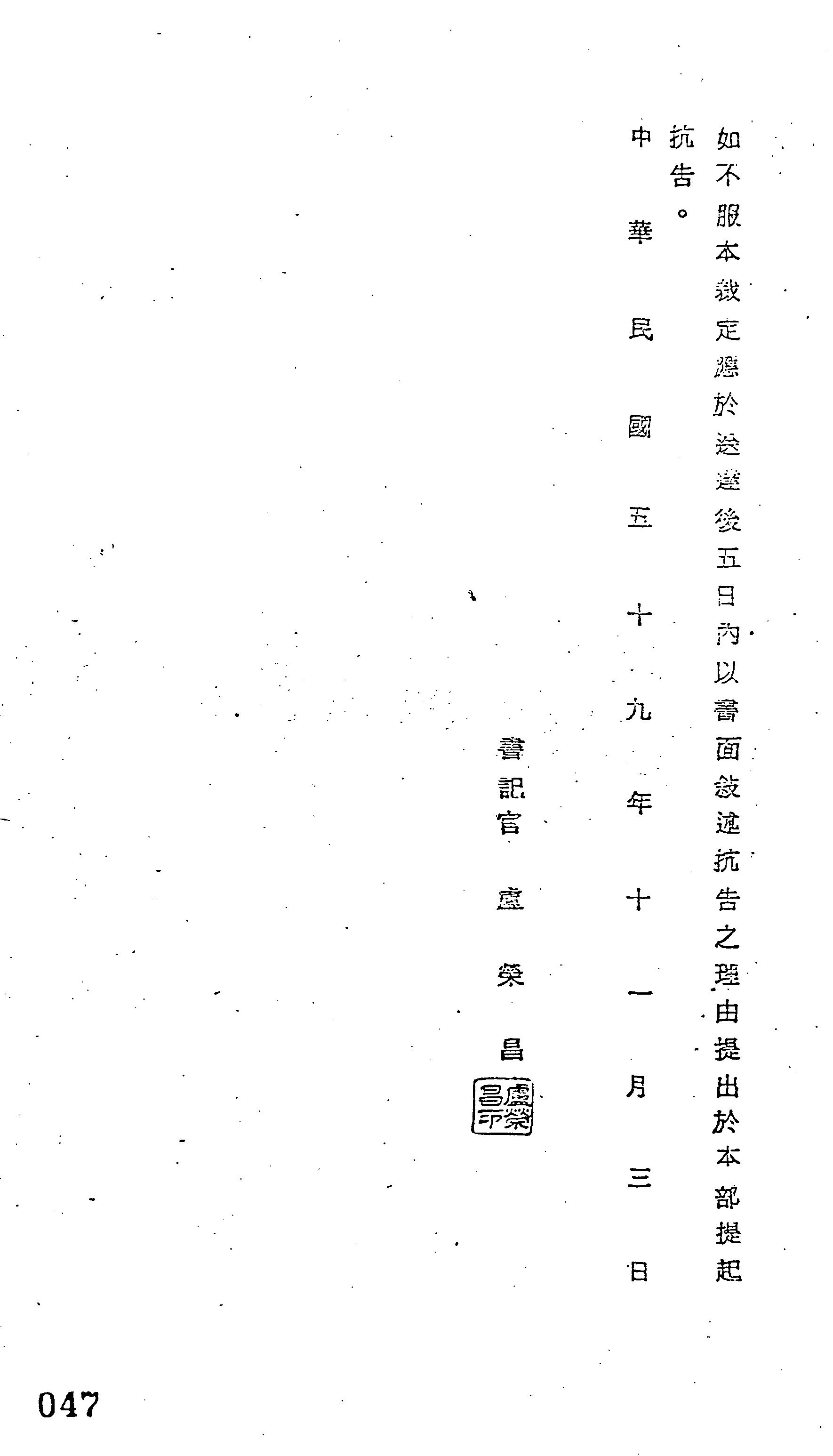 臺灣警備總司令部59年勁需字第6170號裁定書