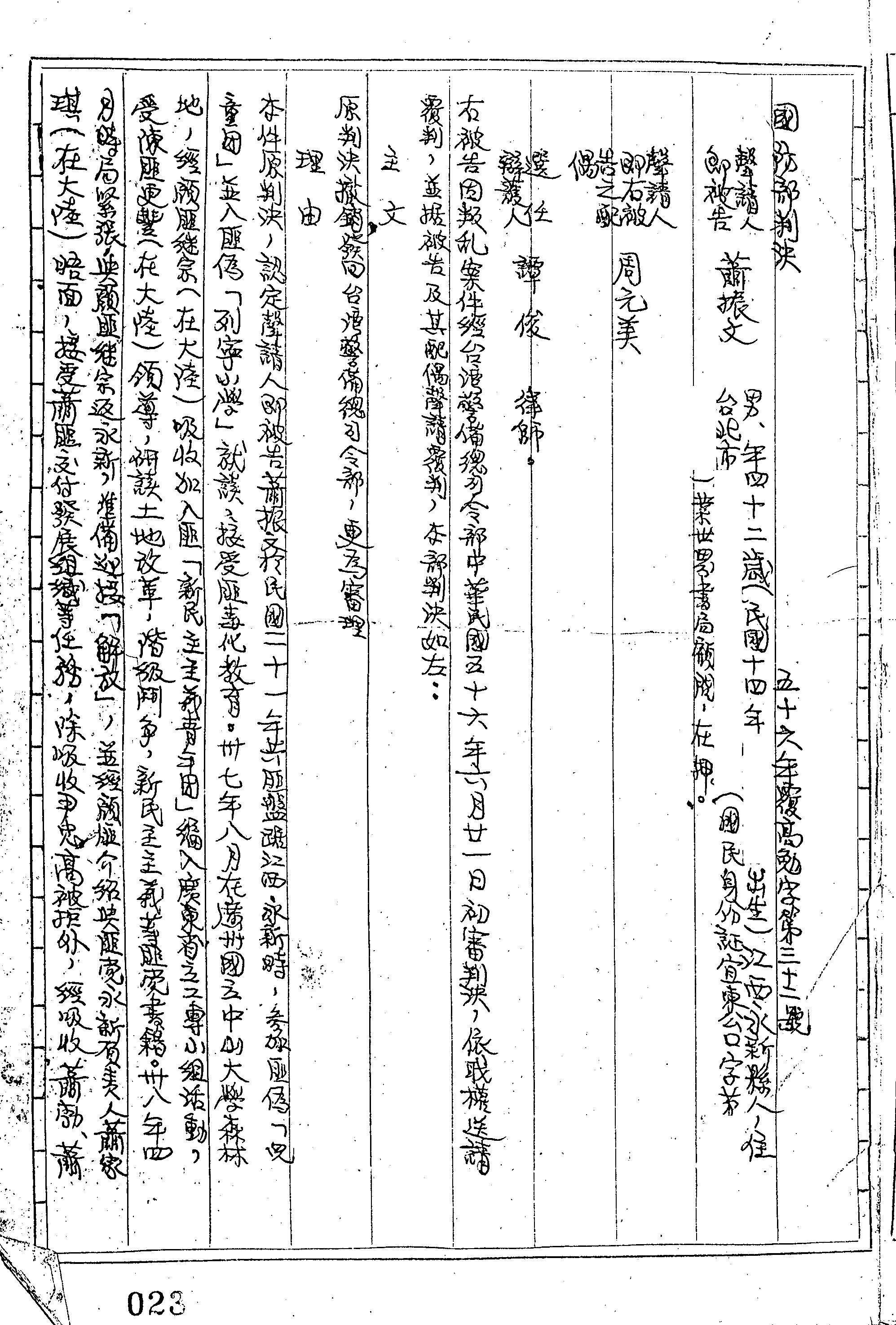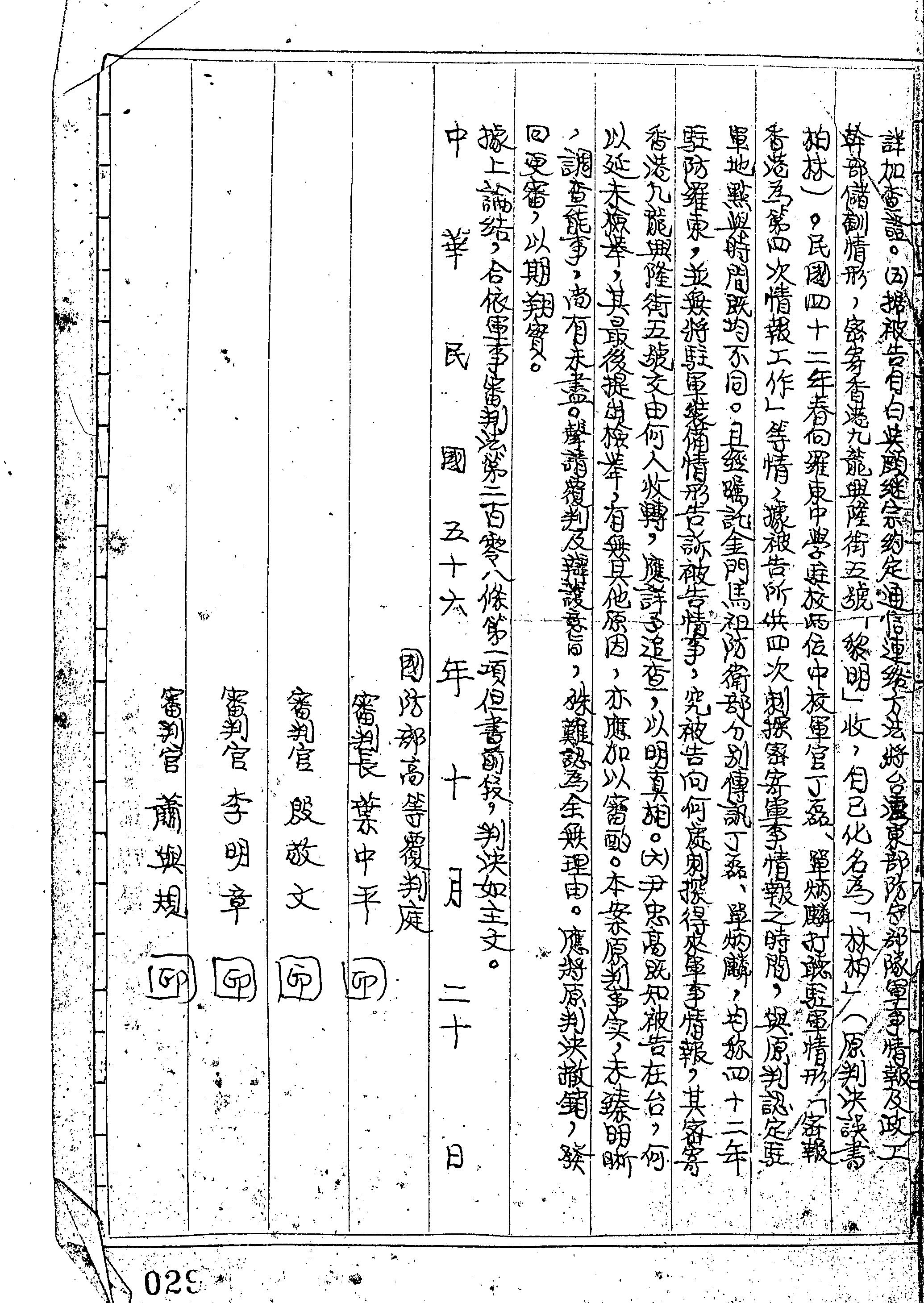 裁判書主文/要旨:原判決撤銷,發回臺灣警備總司令部,更為審理。