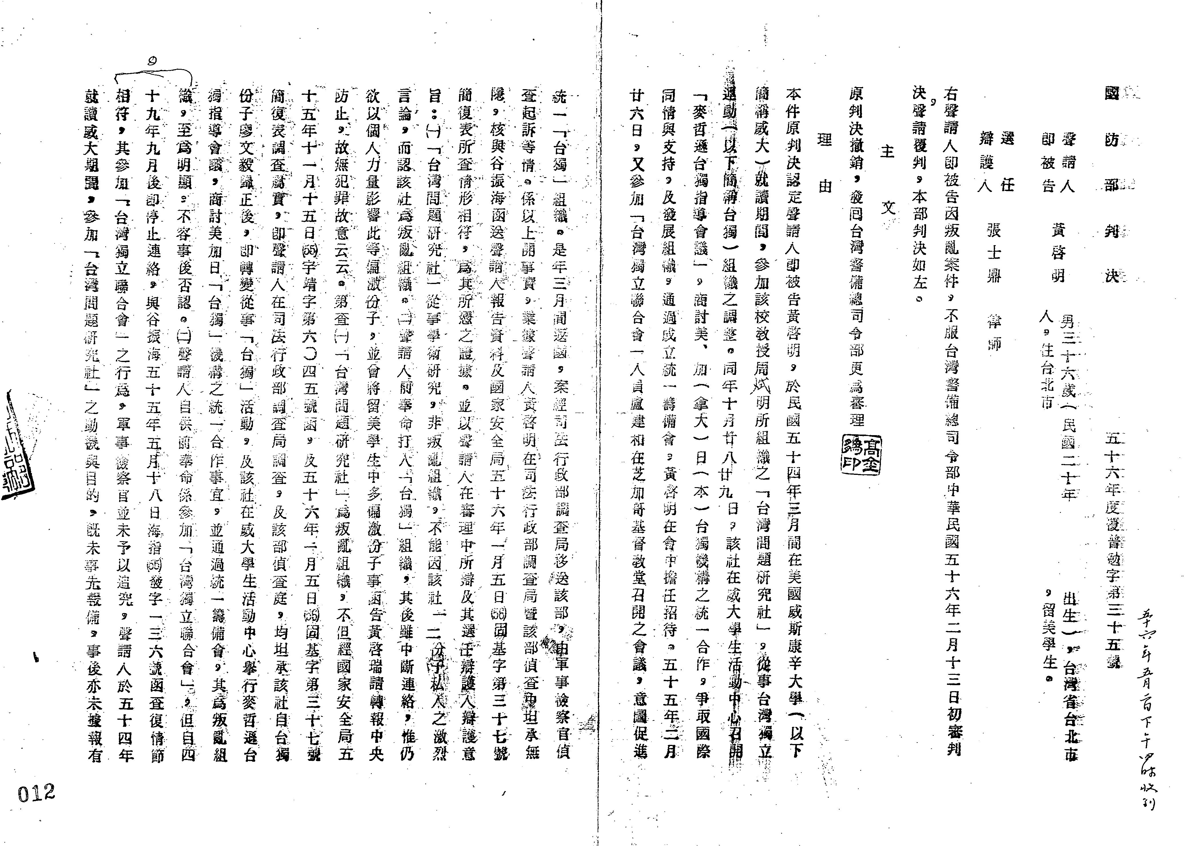 國防部56年覆普勉字第0035號判決書