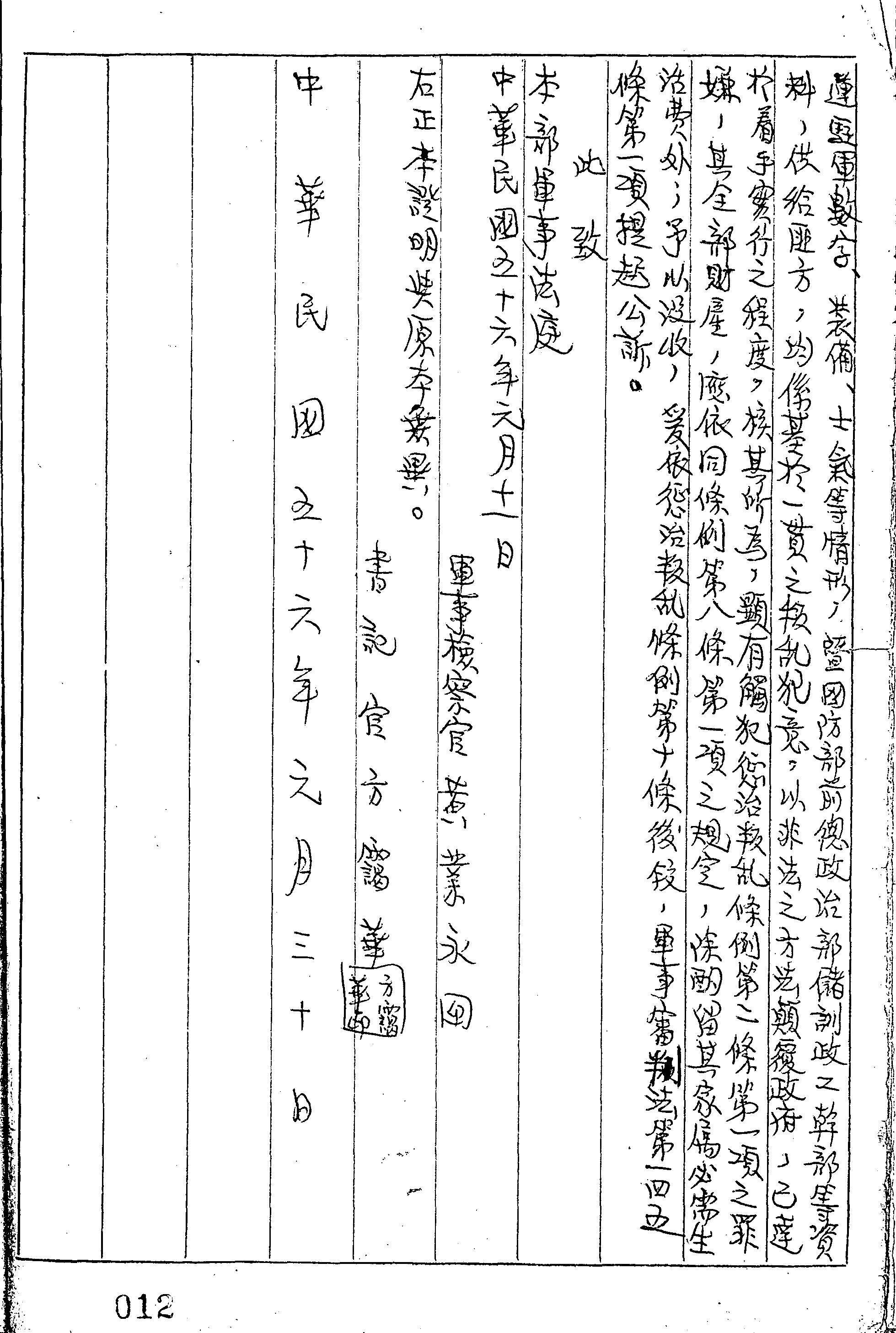 審理機關:臺灣警備總司令部