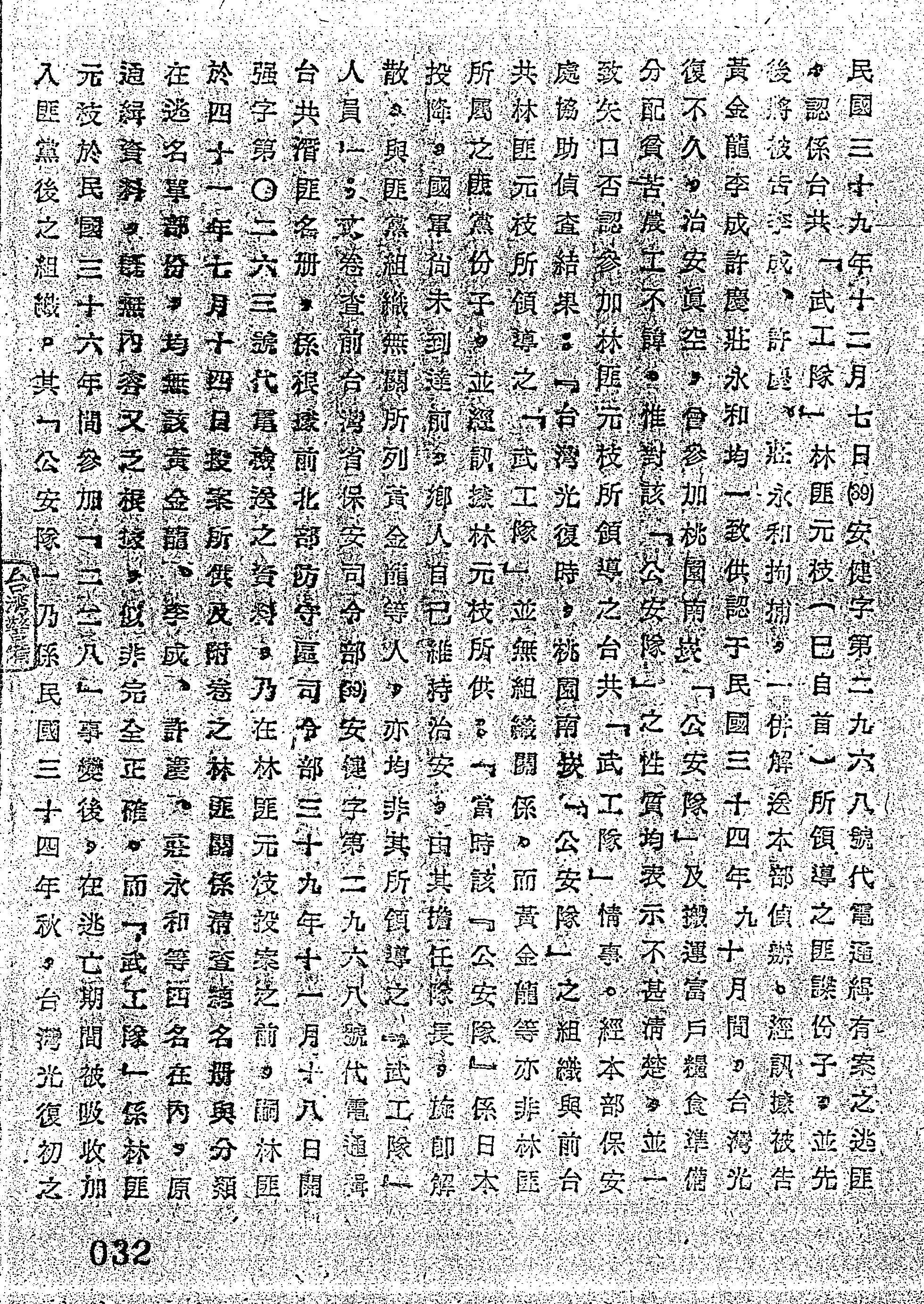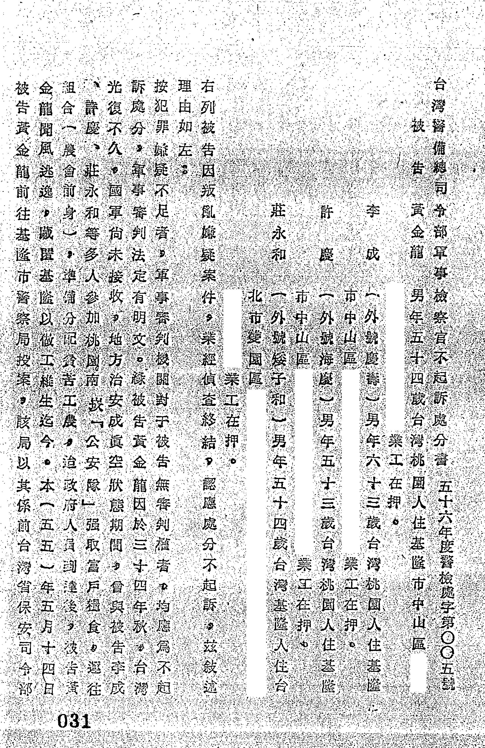 審理機關:臺灣警備總司令部
