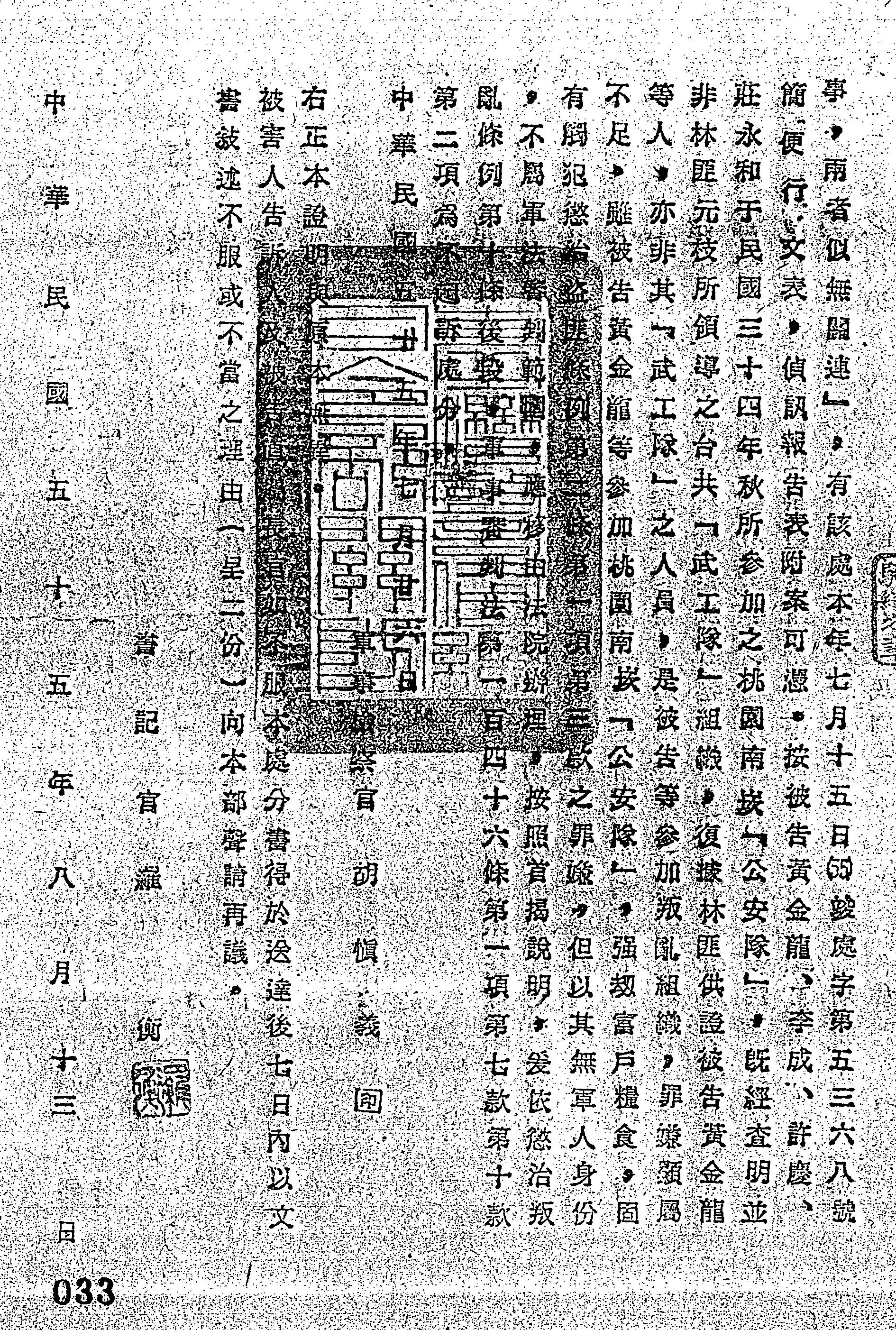 裁判書主文/要旨:黃金龍等因叛亂嫌疑案件業經偵查終結認應處分不起訴。