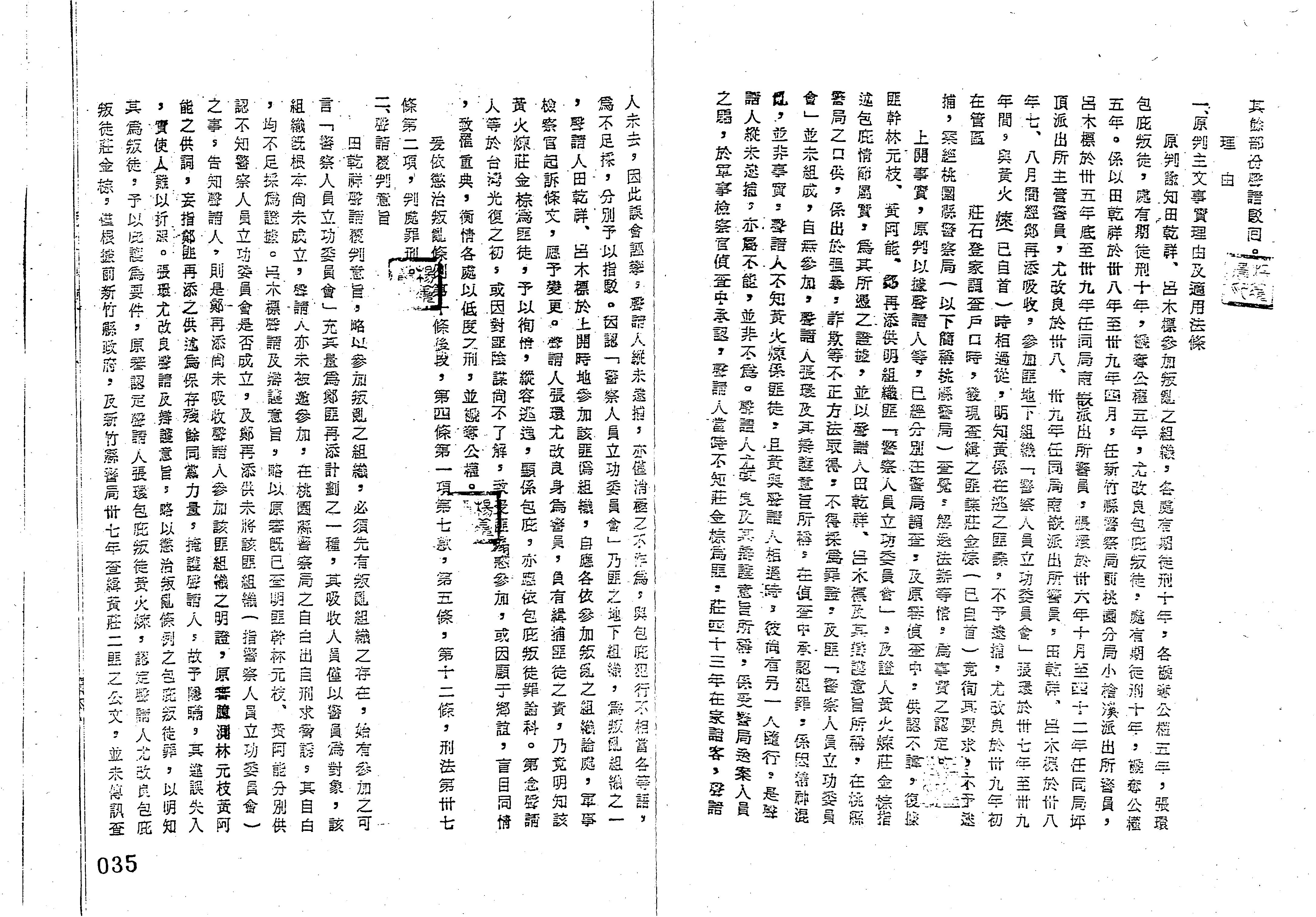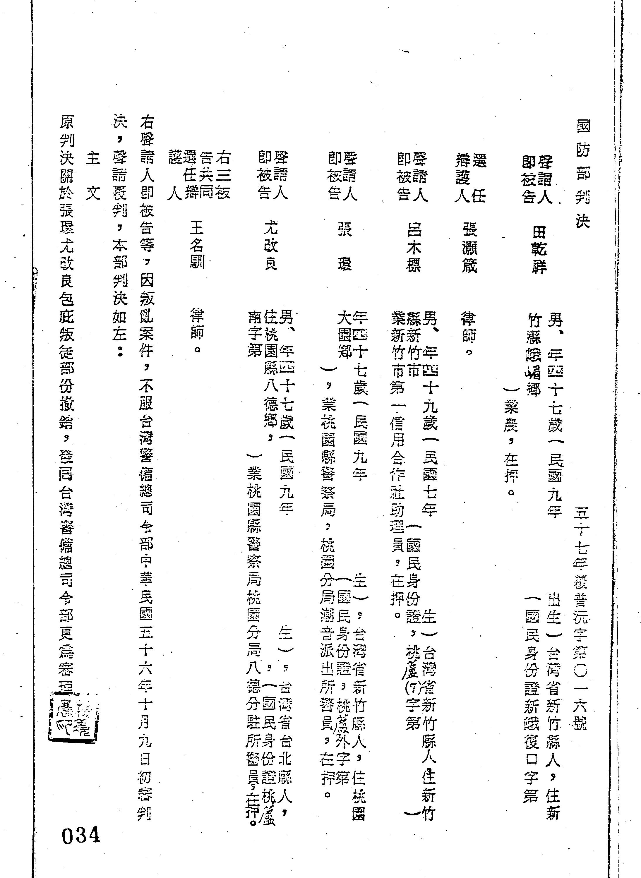裁判書主文/要旨:原判決關於張環、尤改良「包庇叛徒」部分撤銷,發回臺灣警備總司令部更為審理。其餘部分聲請駁回。
