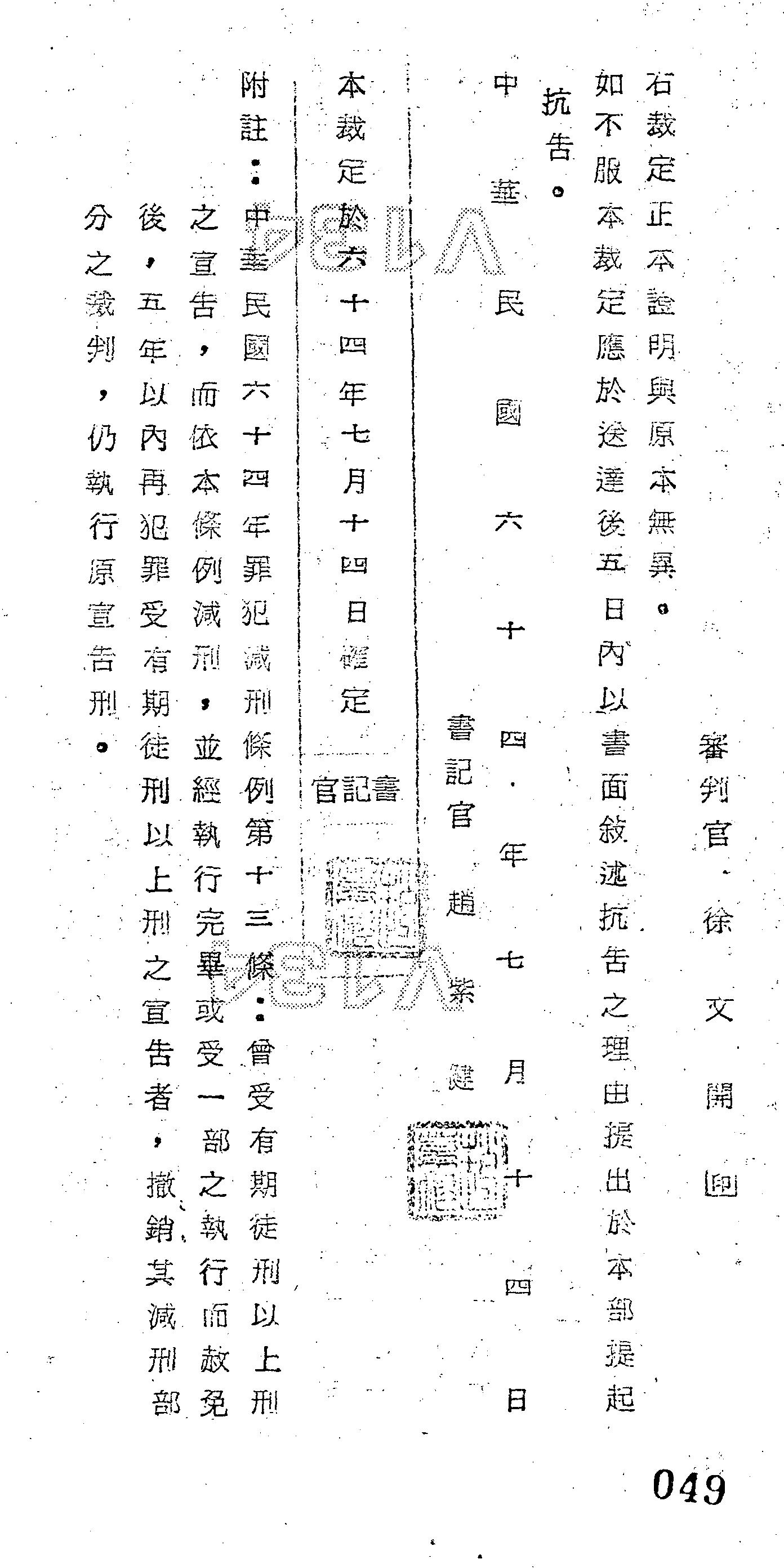 裁判書字號:(64)諫減字第0184號