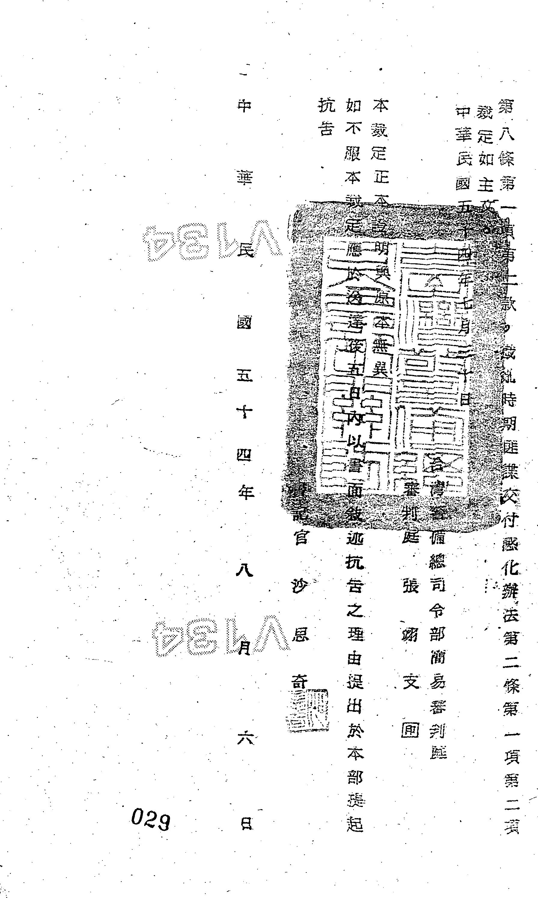臺灣警備總司令部54年警審聲字第0016號裁定書