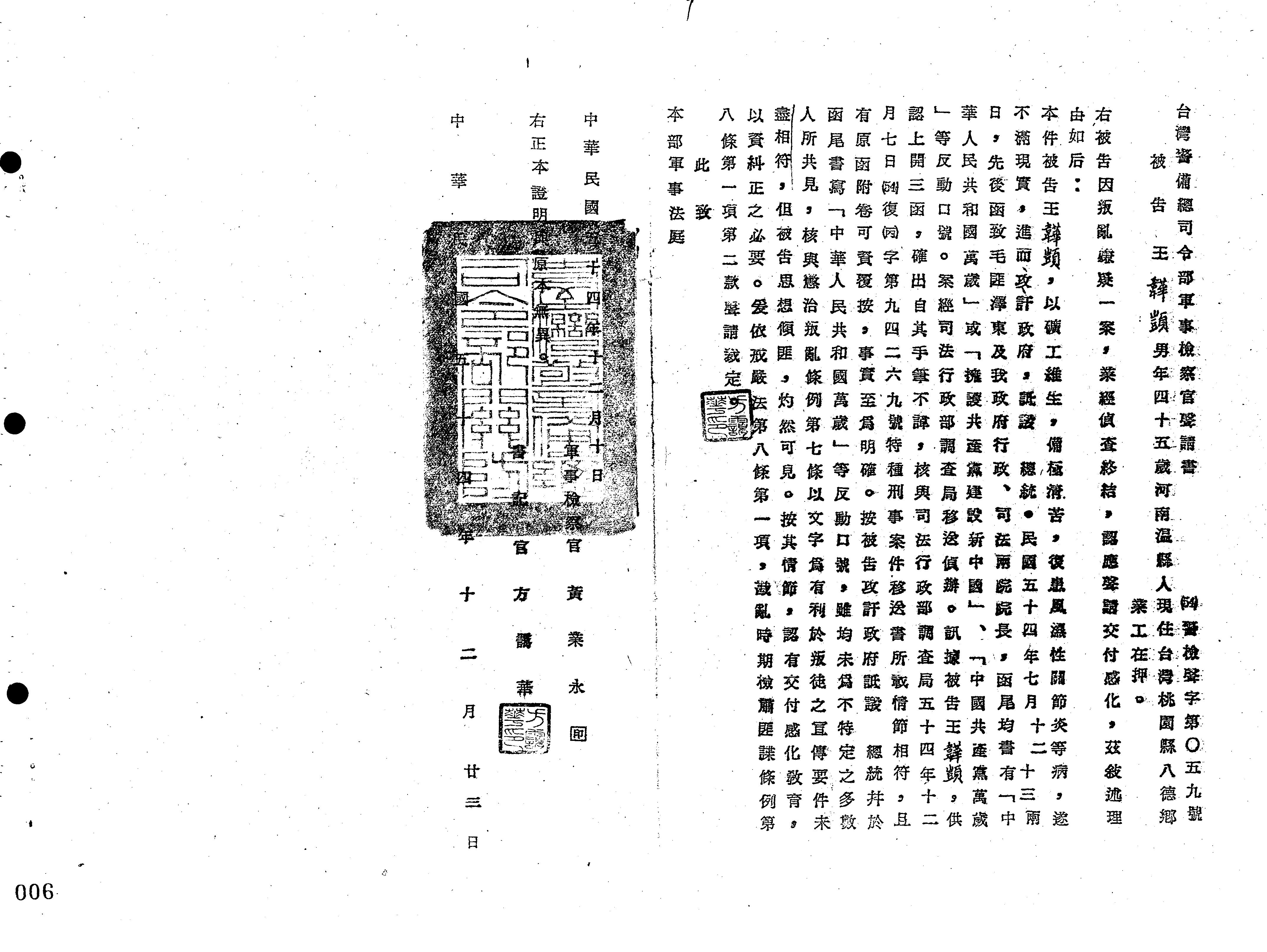 法條:戒嚴法第8條第1項;戡亂時期檢肅匪諜條例第8條第1項第2款