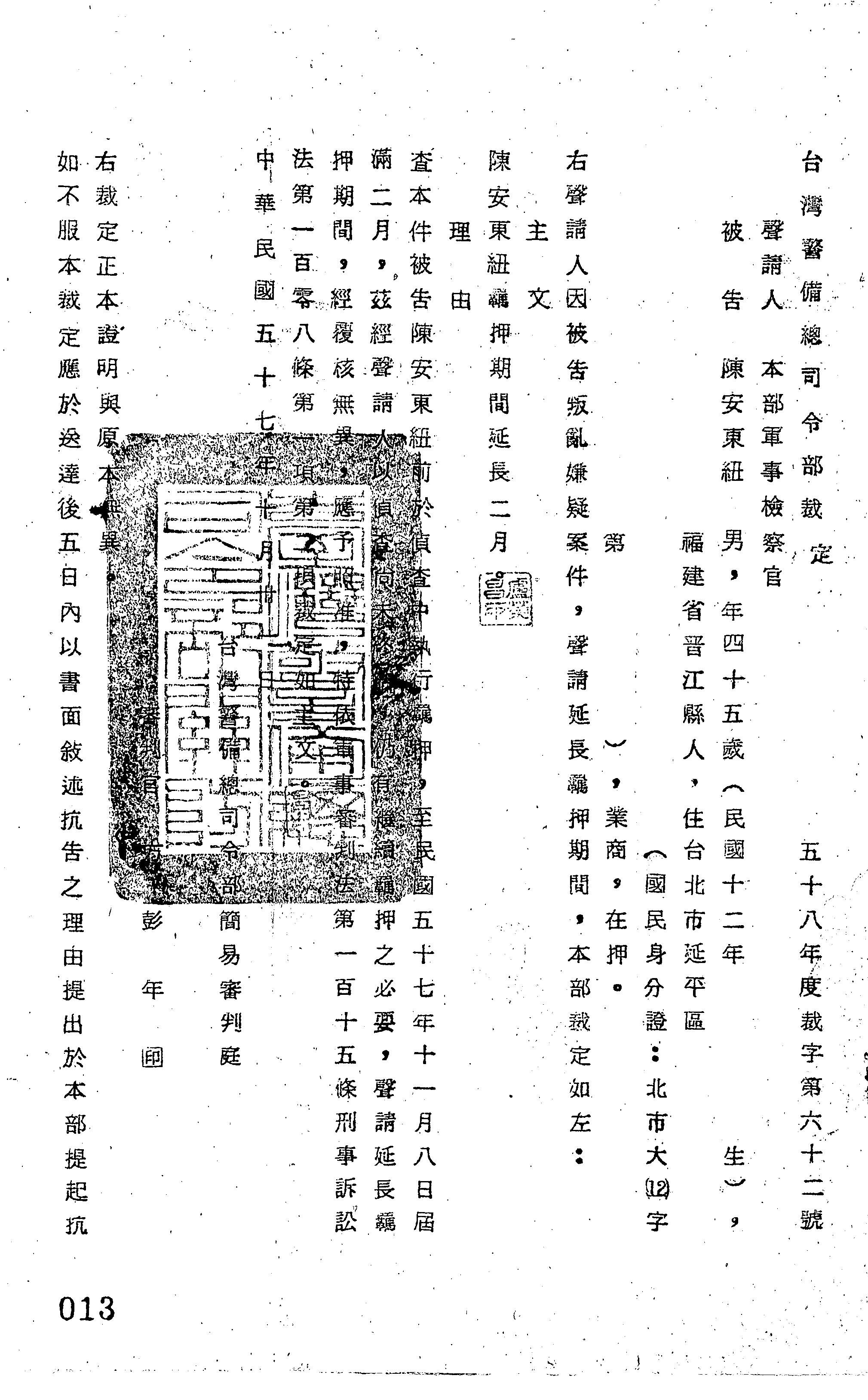 裁判書主文/要旨:陳安東紐羈押期間延長2月。