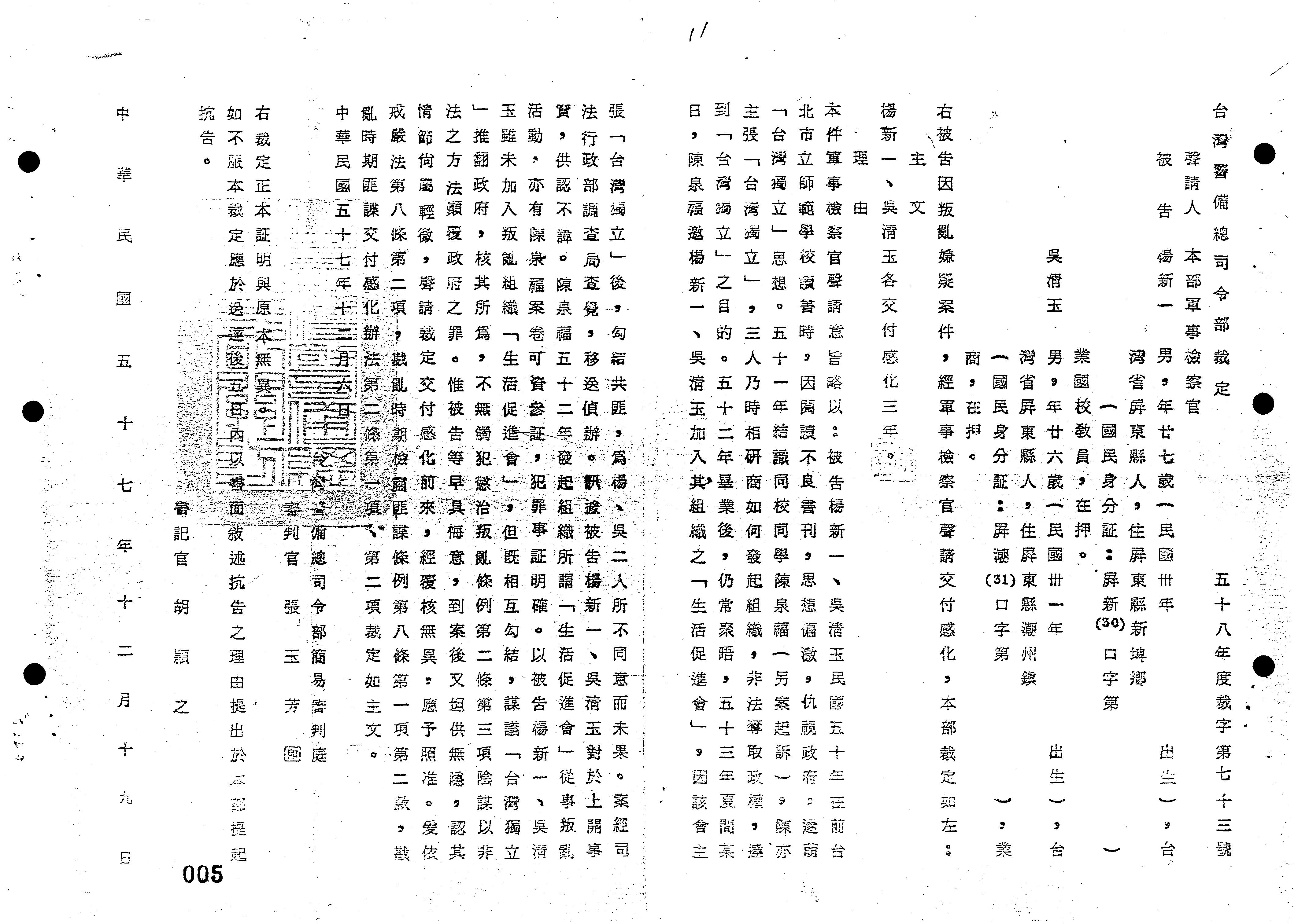 法條:戒嚴法第8條第2項;戡亂時期檢肅匪諜條例第8條第1項第2款;戡亂時期匪諜交付感化辦法第2條第1項、第2條第2項