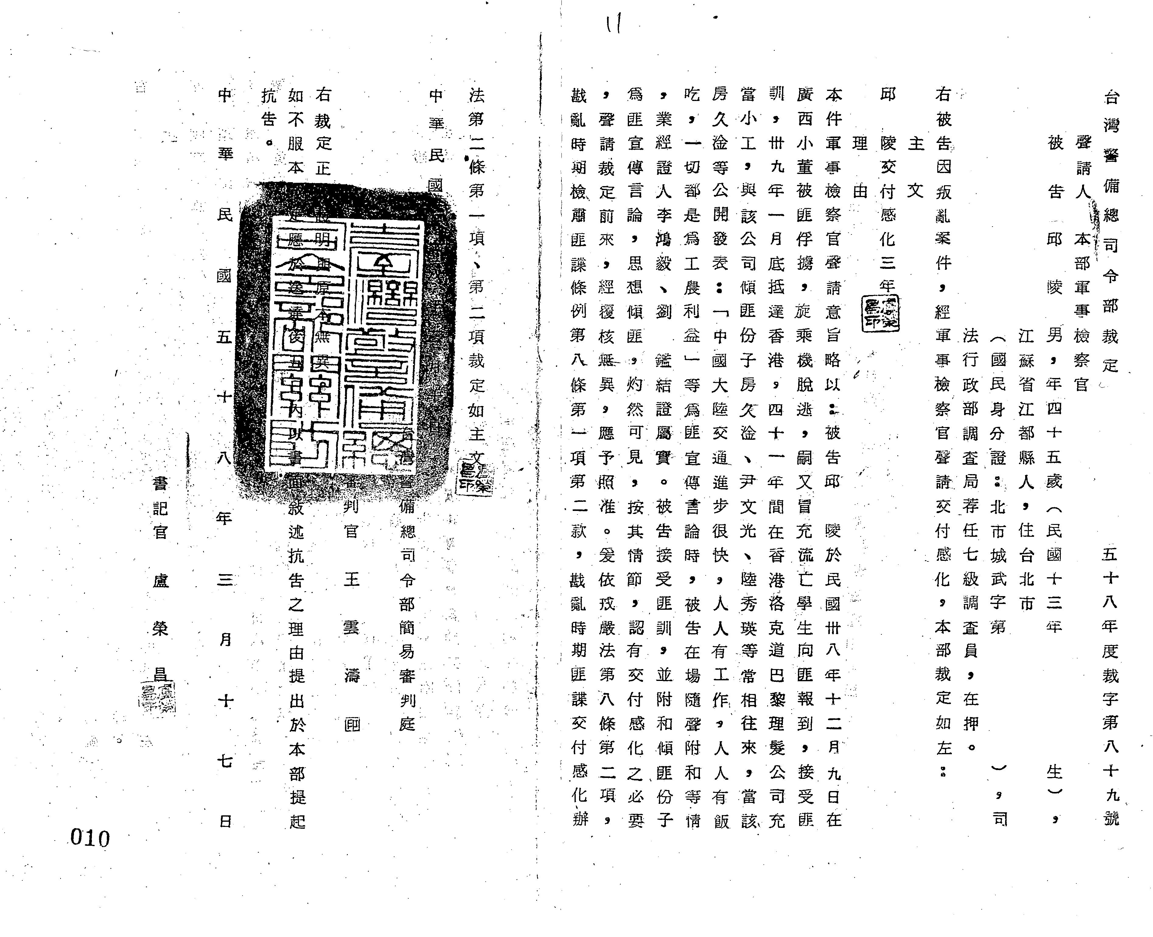 (59)警檢聲字第0052號/(59)勁雷字第0354號
