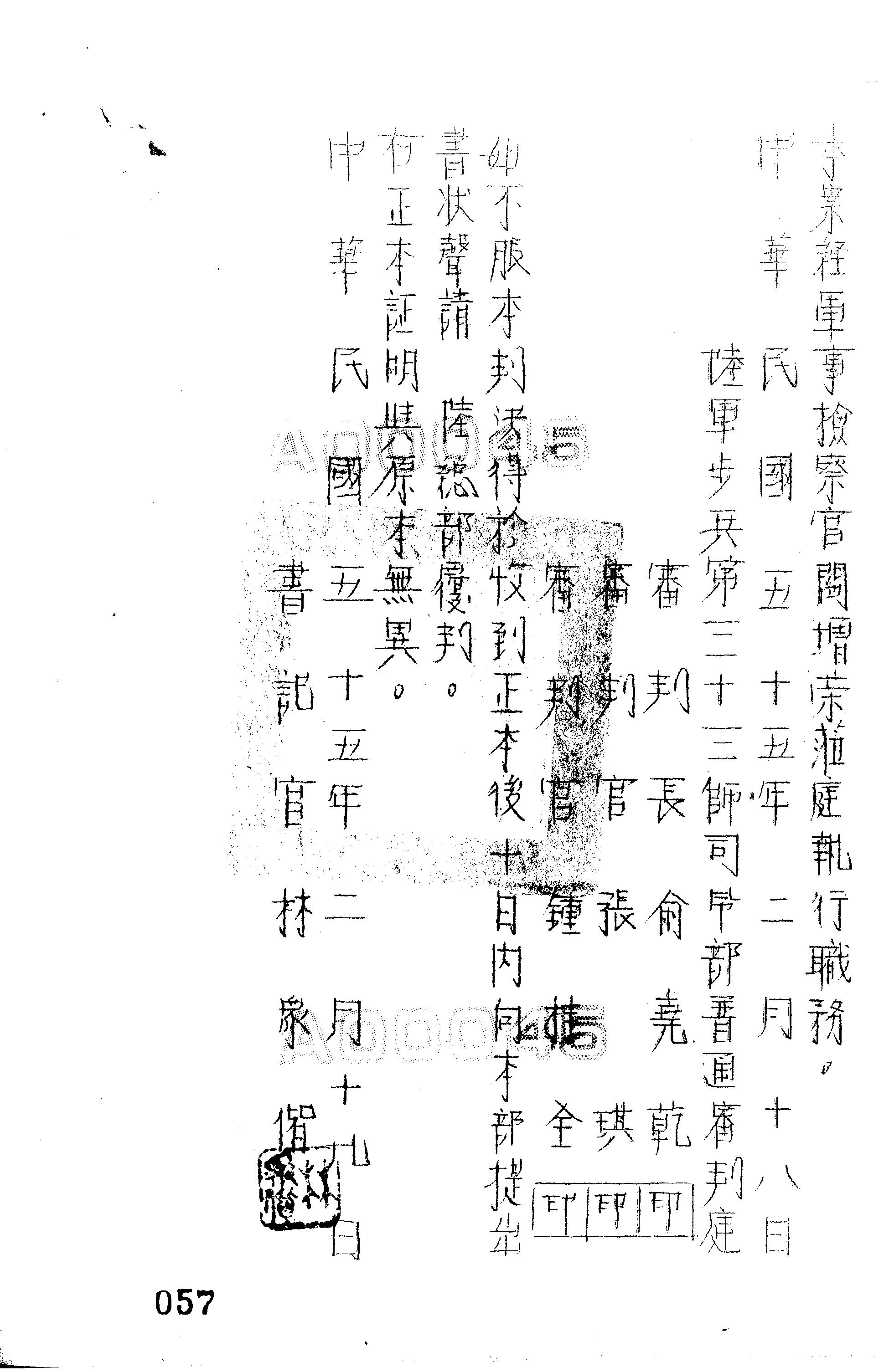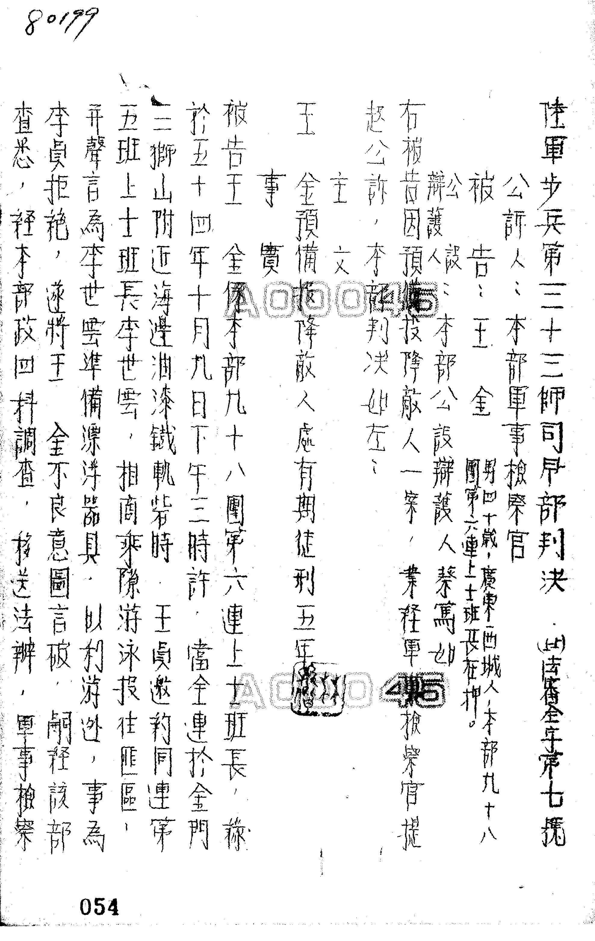 陸軍步兵第三十三師司令部55年法審全字第0007號判決書