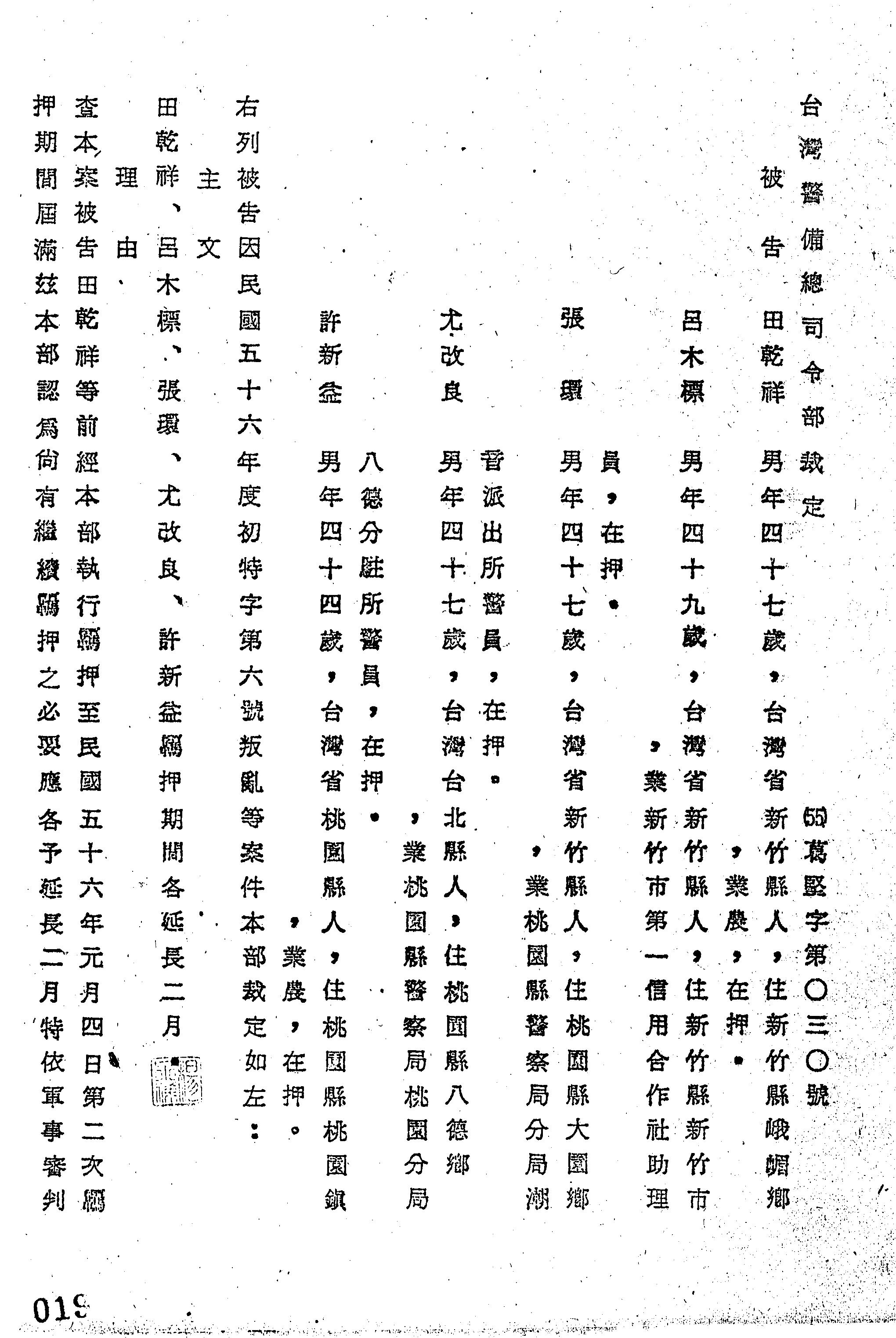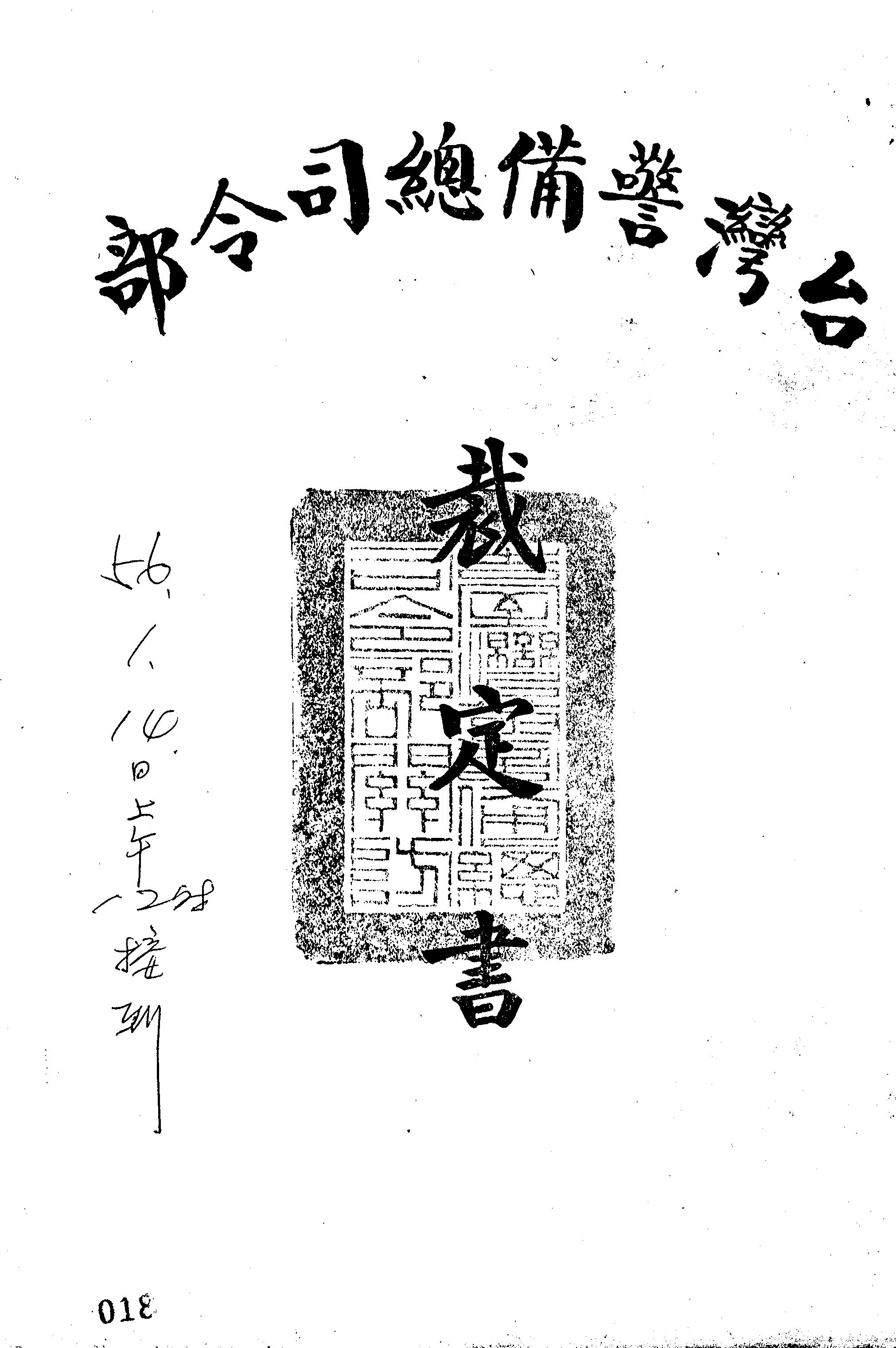 臺灣警備總司令部55年葛堅字第0030號裁定書