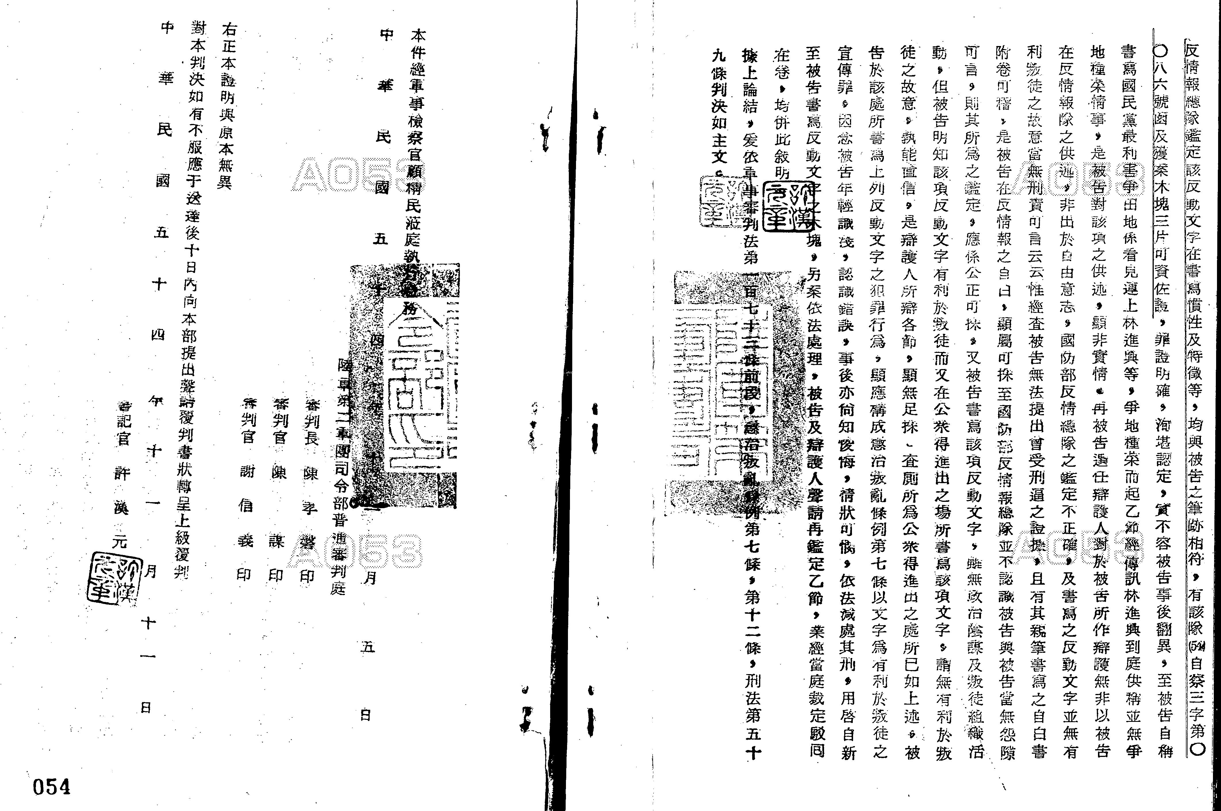 法條:軍事審判法第173條前段;懲治叛亂條例第7條、第12條;刑法第59條