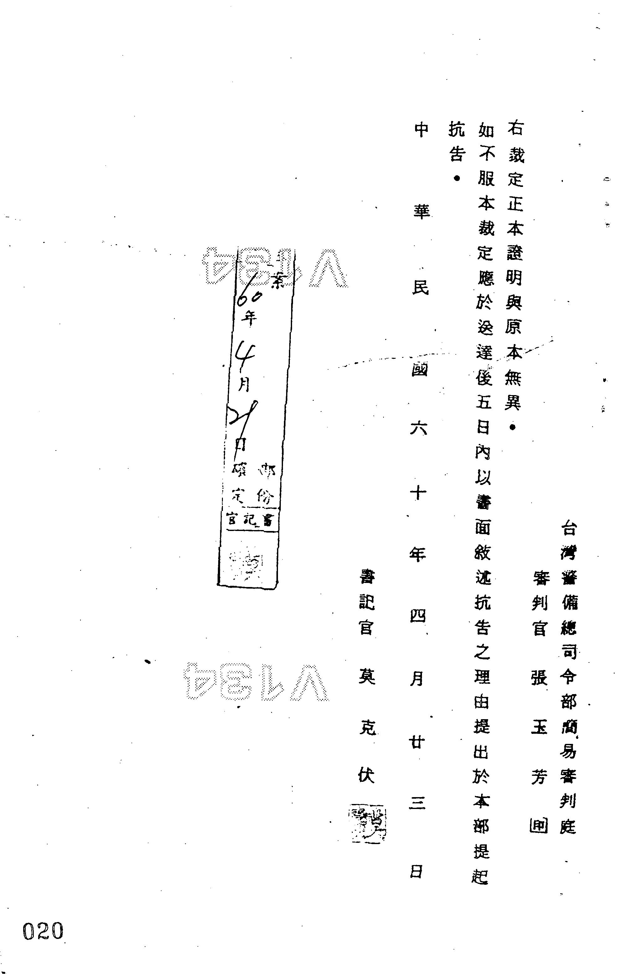 裁判書字號:(60)裁化字第0009號/(60)遵威字第2401號