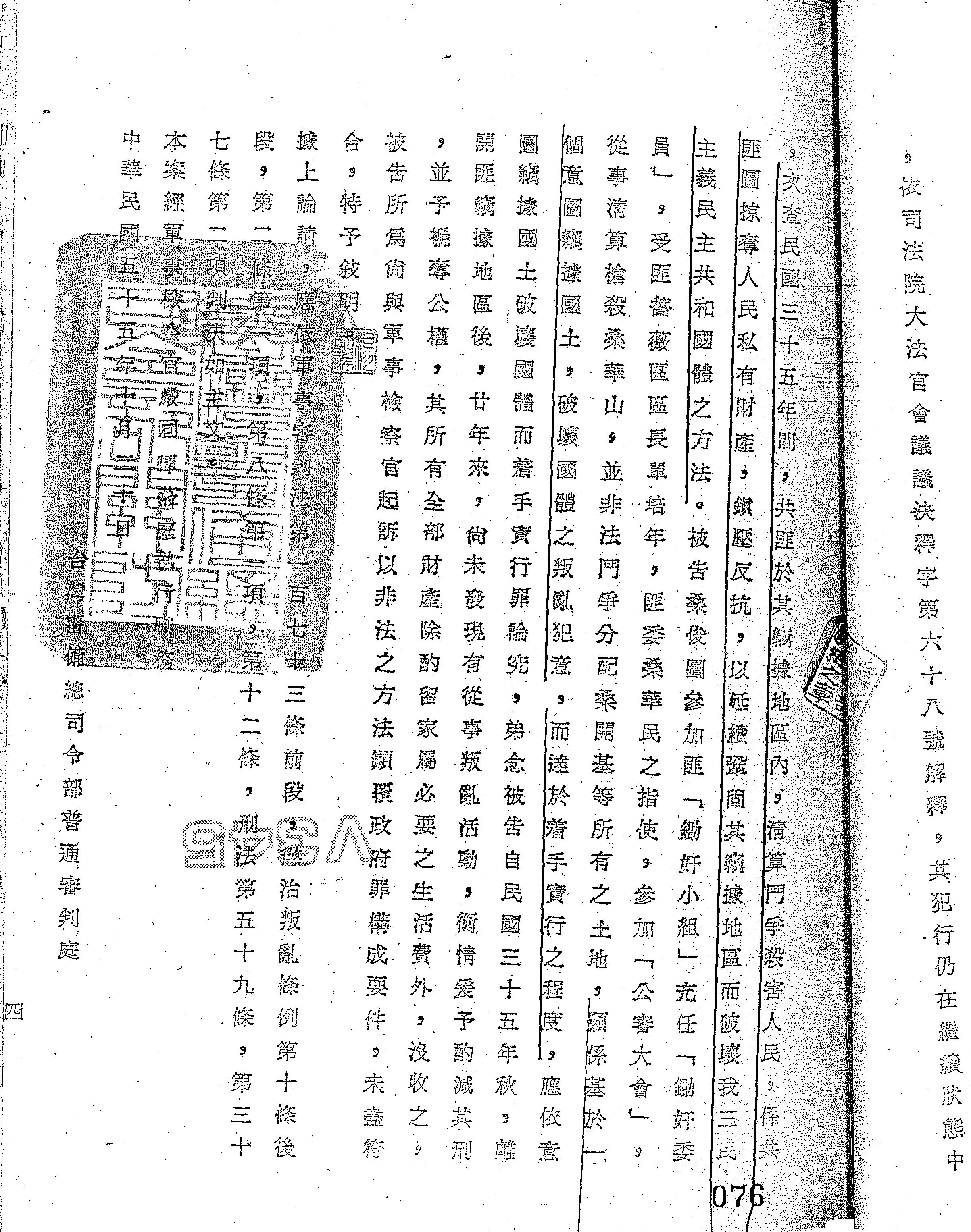 法條:軍事審判法第173條前段;懲治叛亂條例第10條後段、第2條第1項、第8條第1項、第12條;刑法第59條、第37條第2項