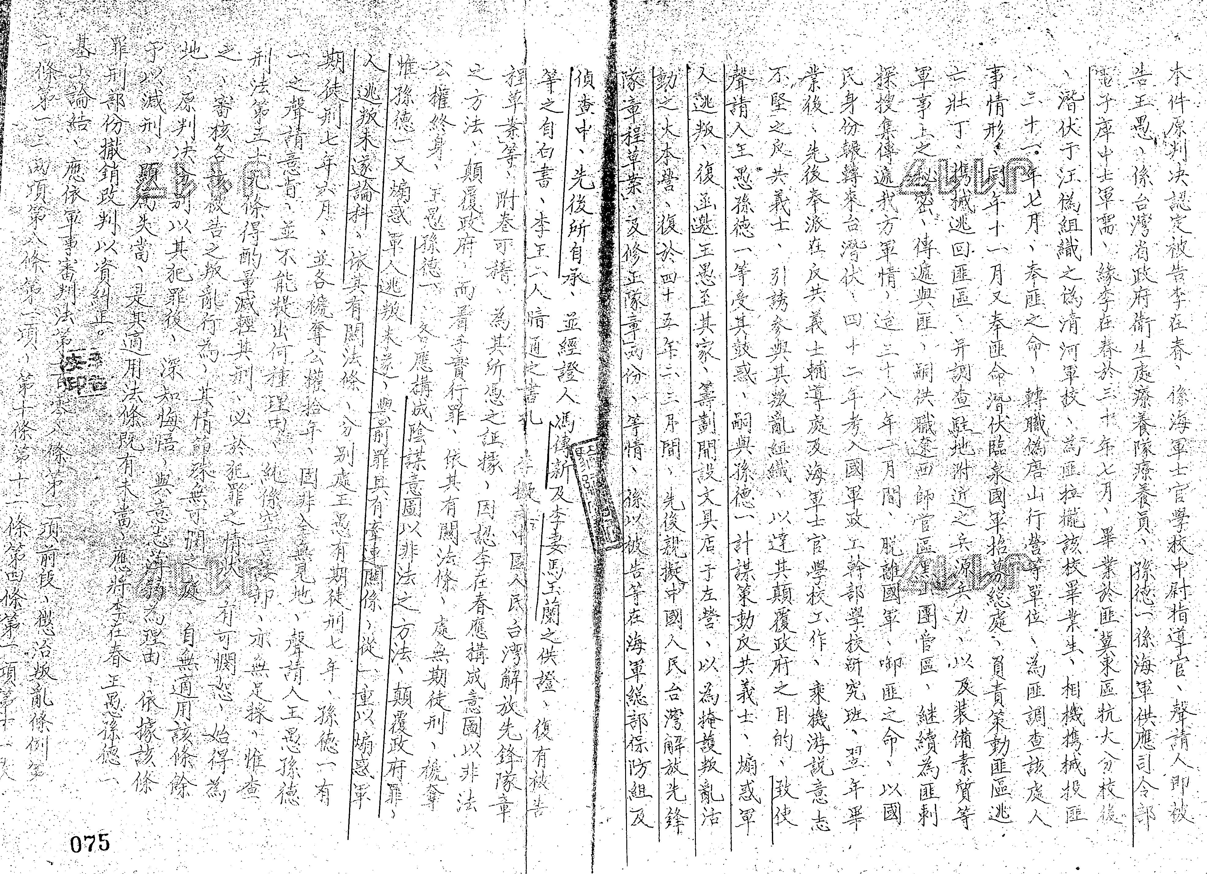- 法條:軍事審判法第208條第1項前段;懲治叛亂條例第2條第1項、第2條第3項、第8條第1項、第10條、第12條、第4條第1項第11款、第4條第2項;刑法第37條第1項、第37條第2項、第55條