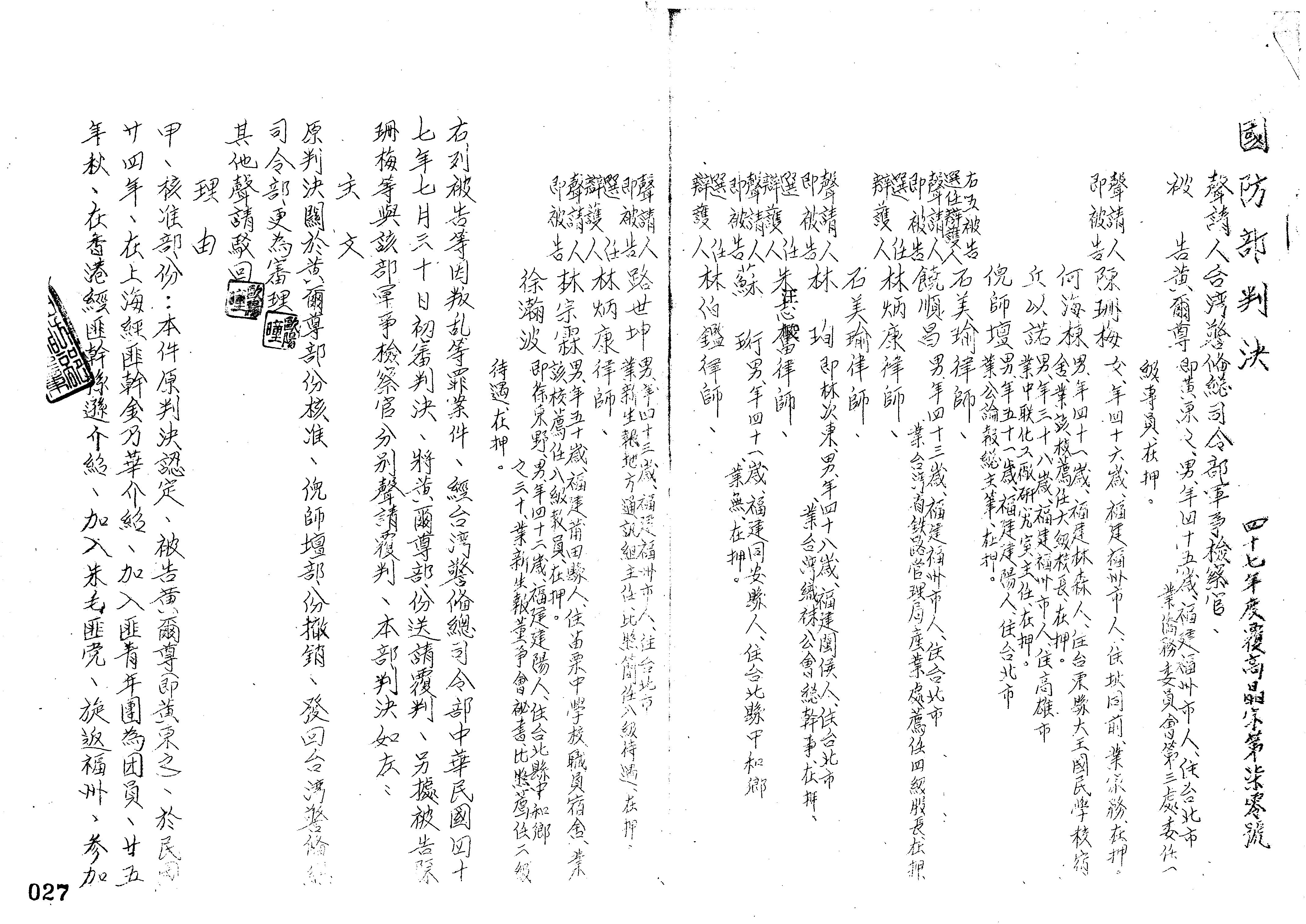 裁判書主文/要旨:原判決關於黃爾尊部分核准;倪師壇部分撤銷,發回臺灣警備總司令部更為審理。其他聲請駁回。