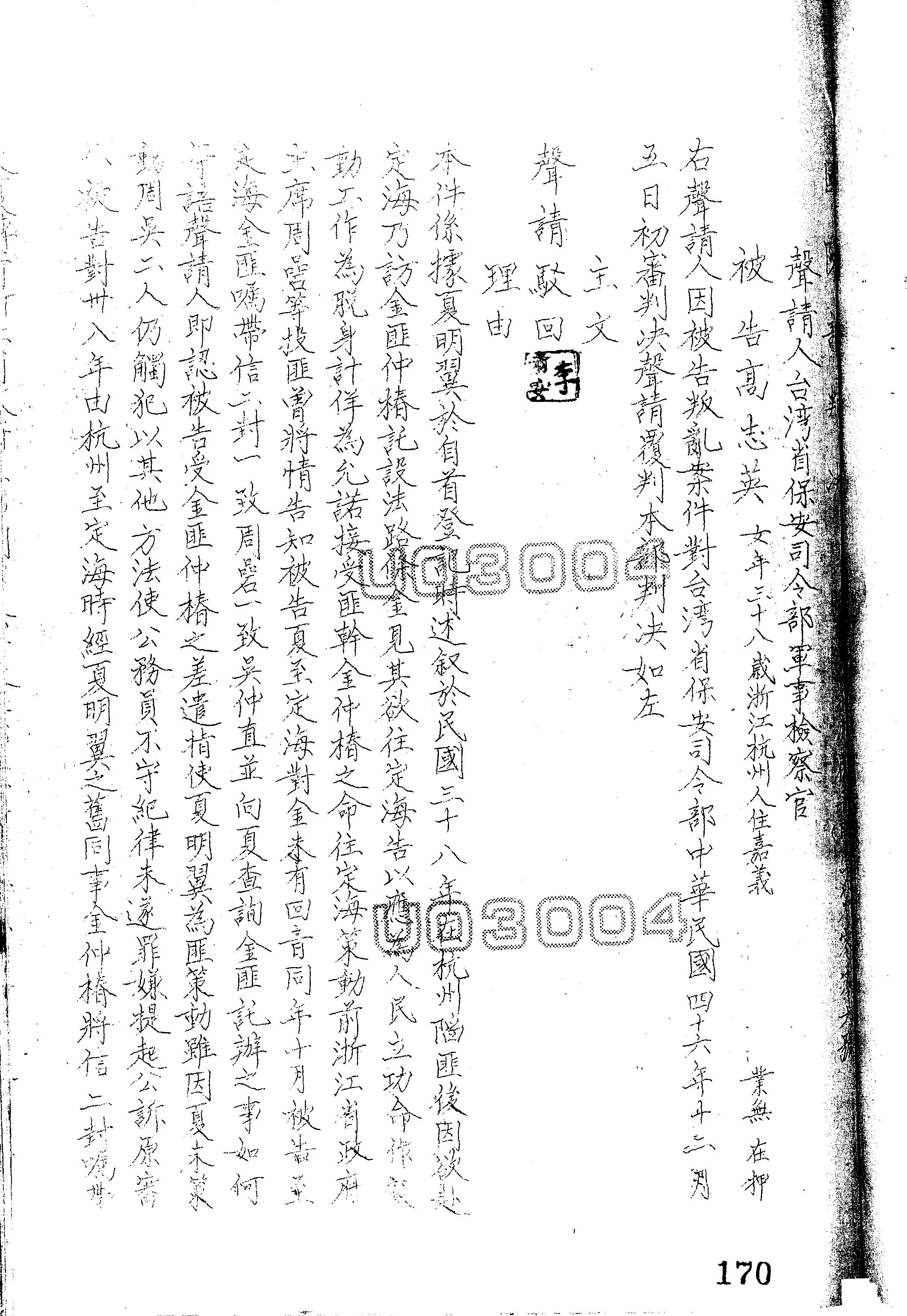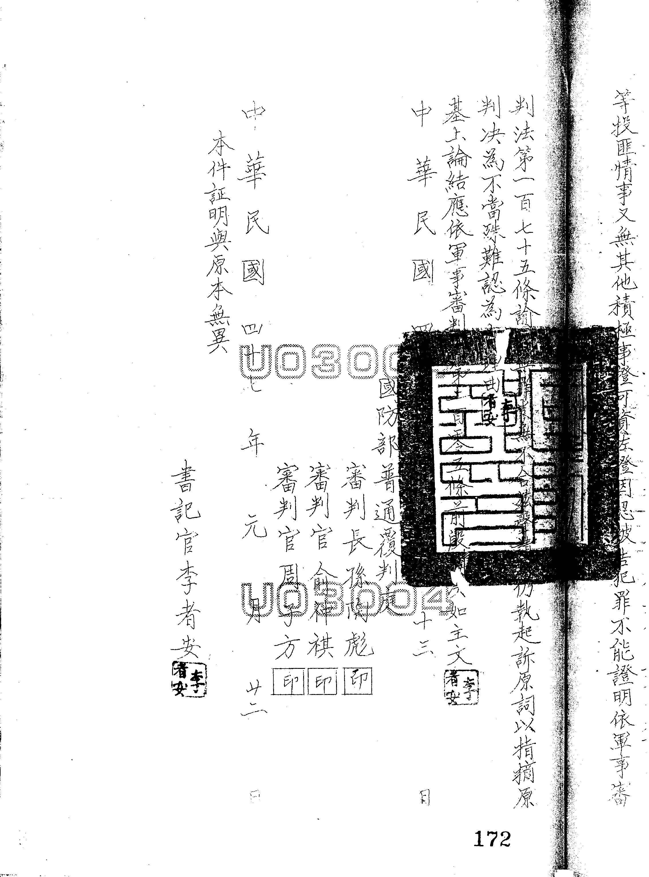 國防部47年覆普(映)字第0006號判決書