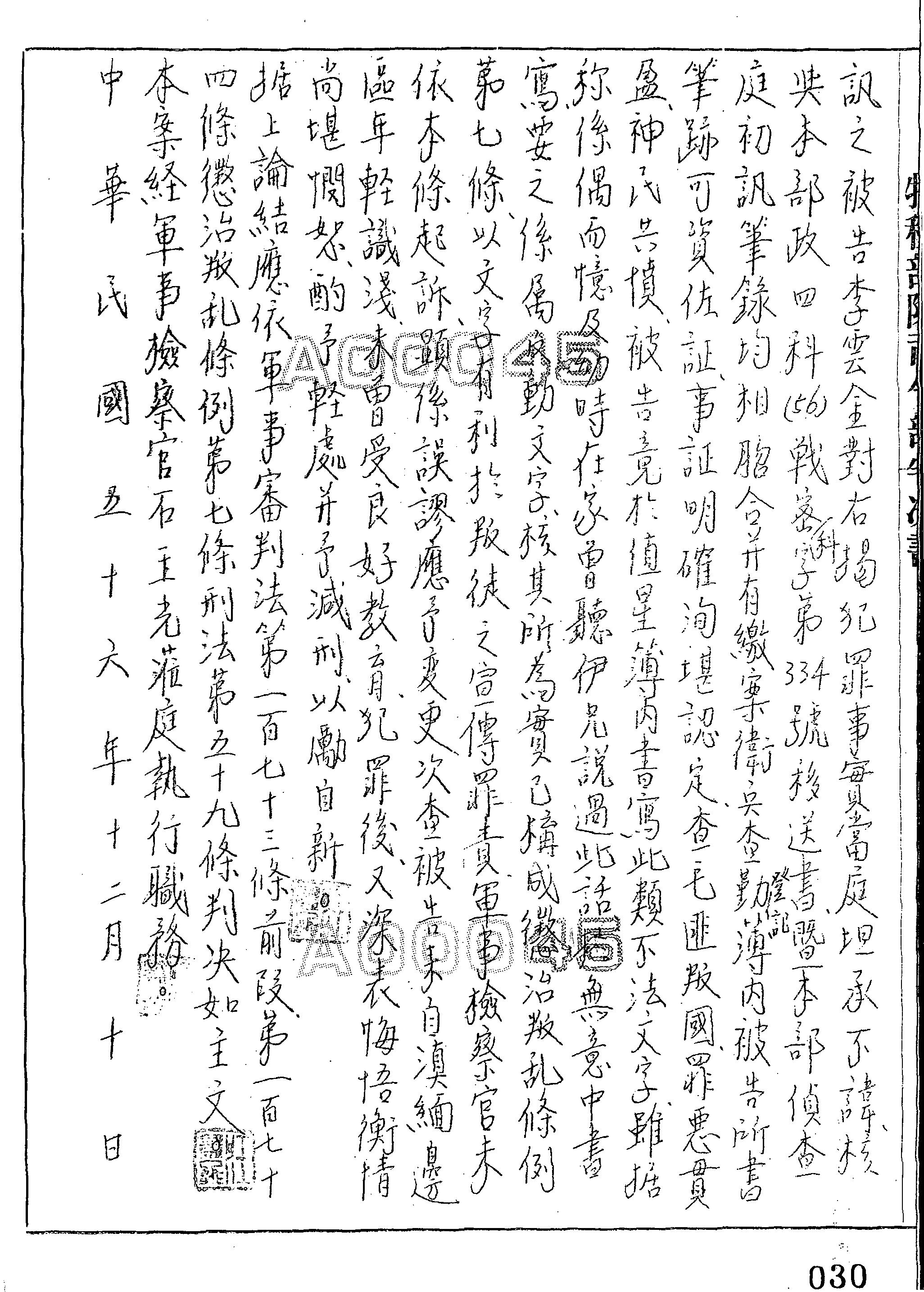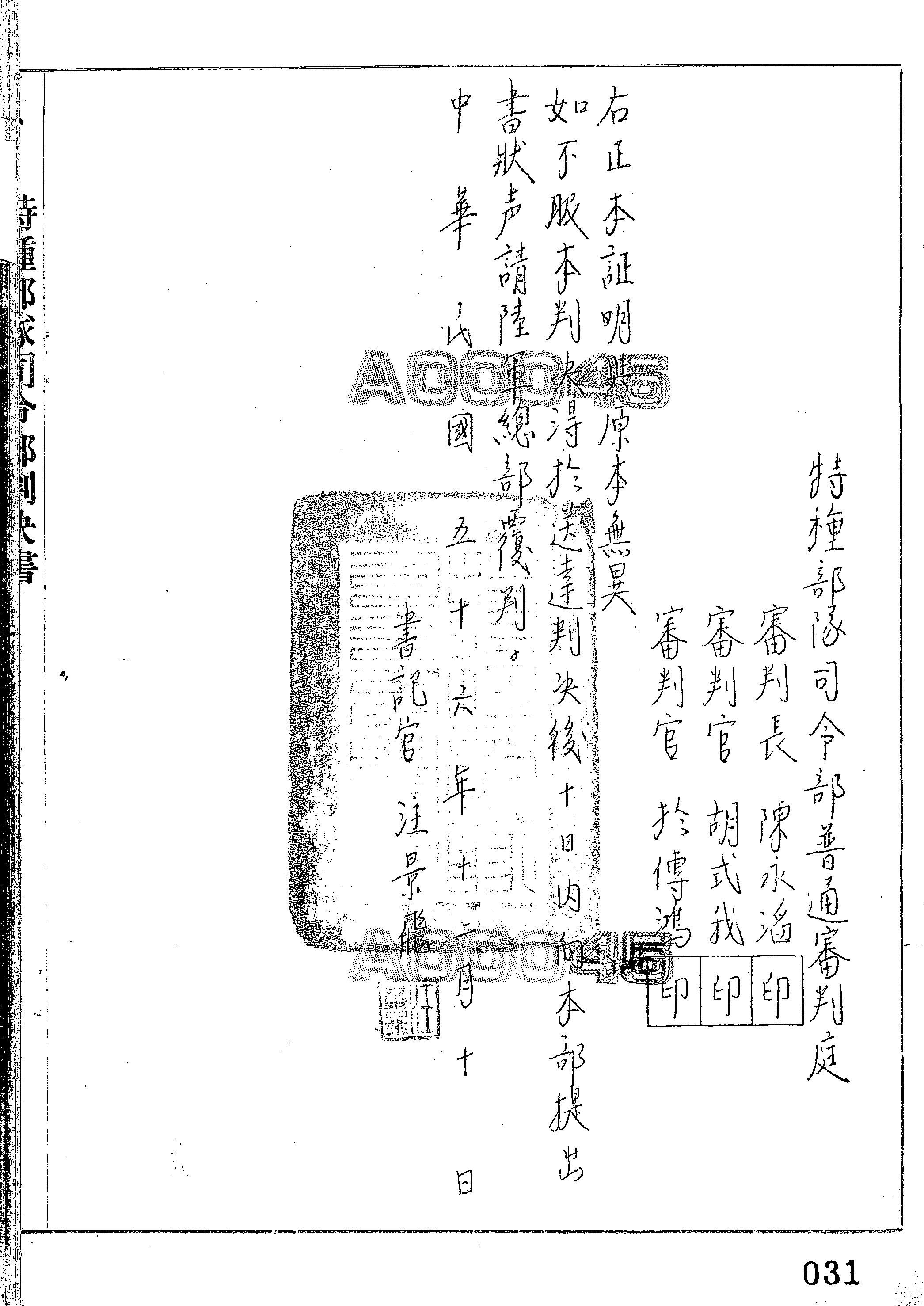 特種部隊司令部56年審字第0030號判決書