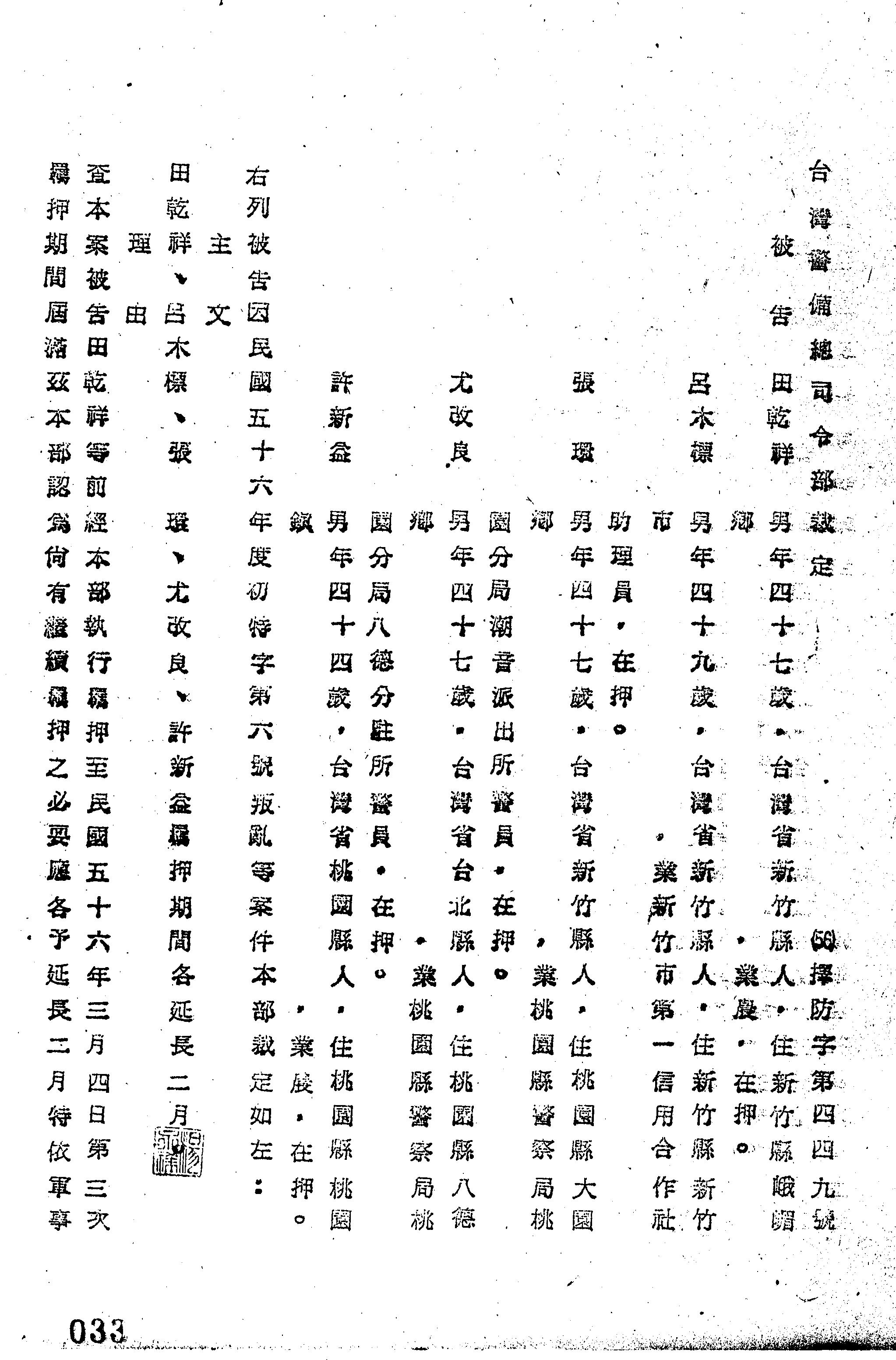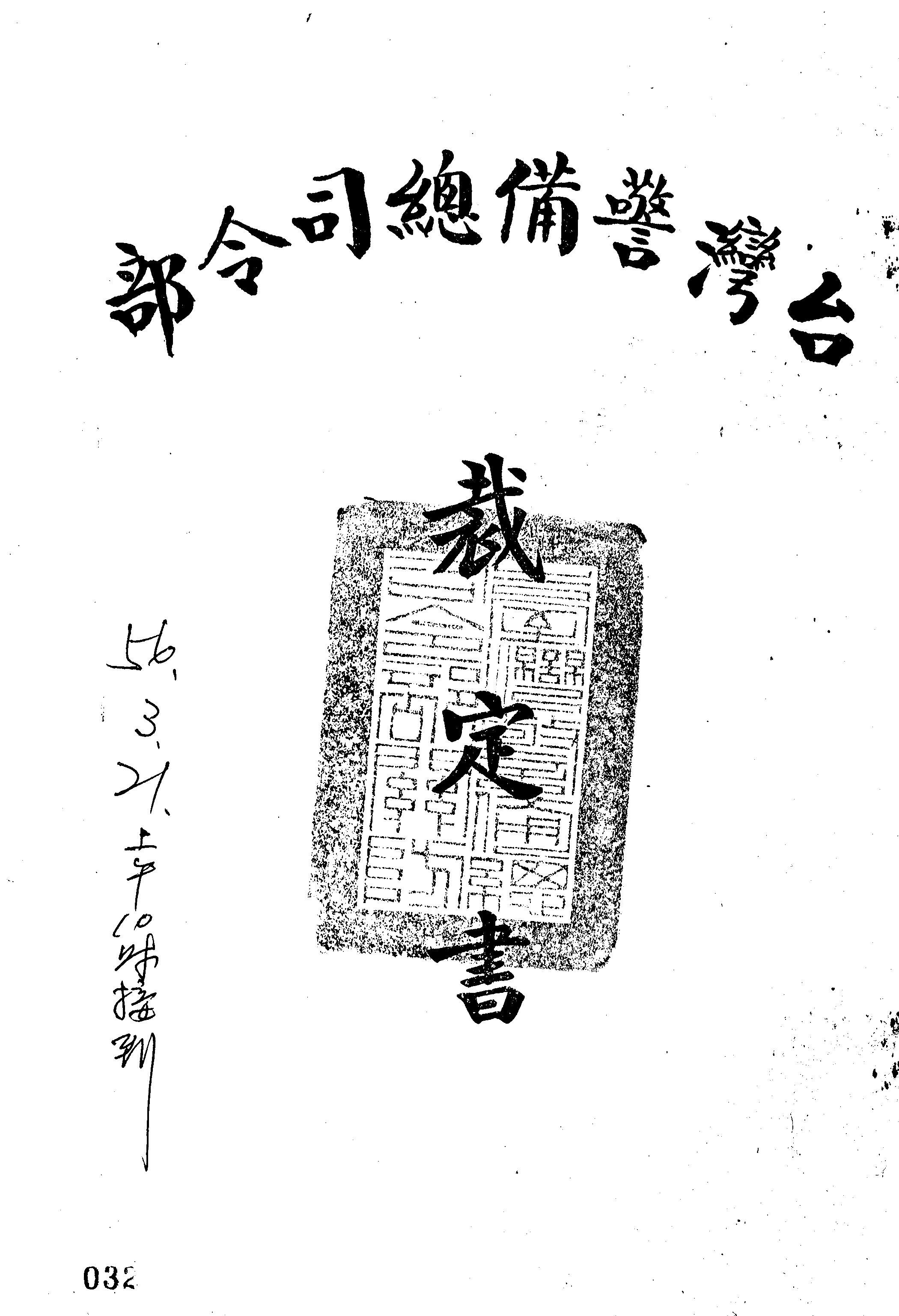 審理機關:臺灣警備總司令部