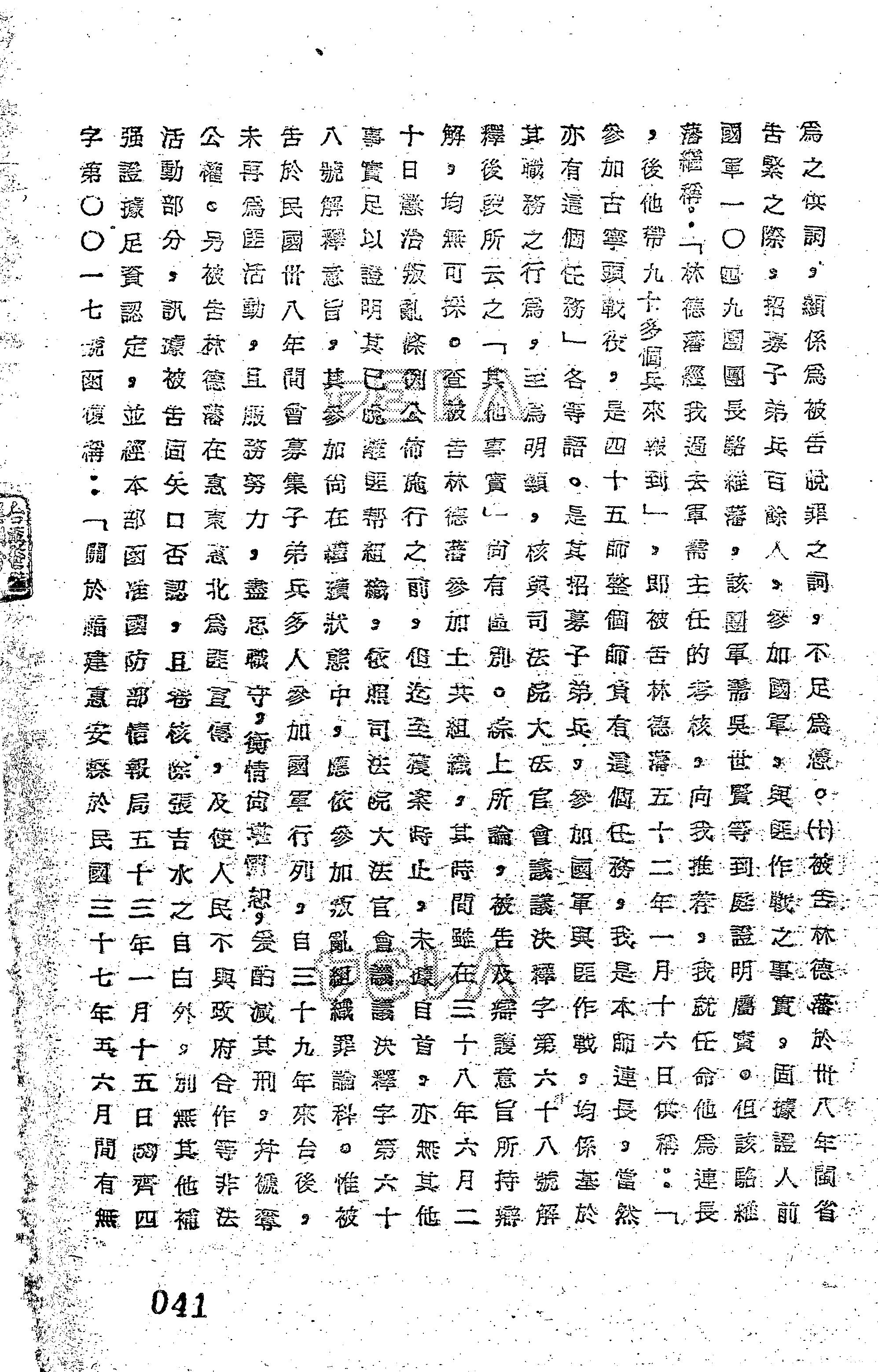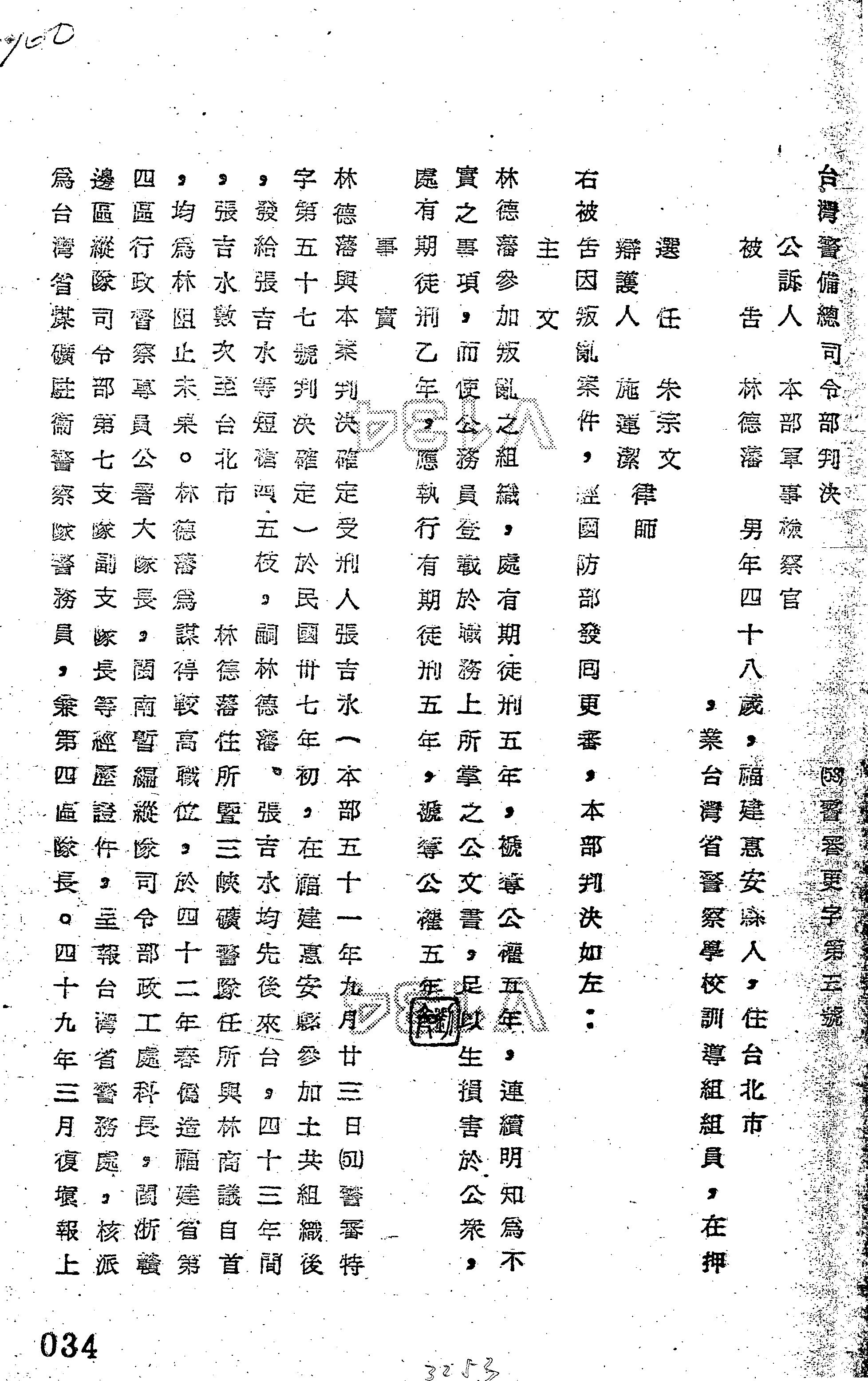 - 裁判書主文/要旨:林德藩「參加叛亂之組織」,處有期徒刑5年,褫奪公權5年;「連續明知為不實之事項,而使公務員登載於職務上所掌之公文書,足以生損害於公眾」,處有期徒刑1年;應執行有期徒刑5年,褫奪公權5年。