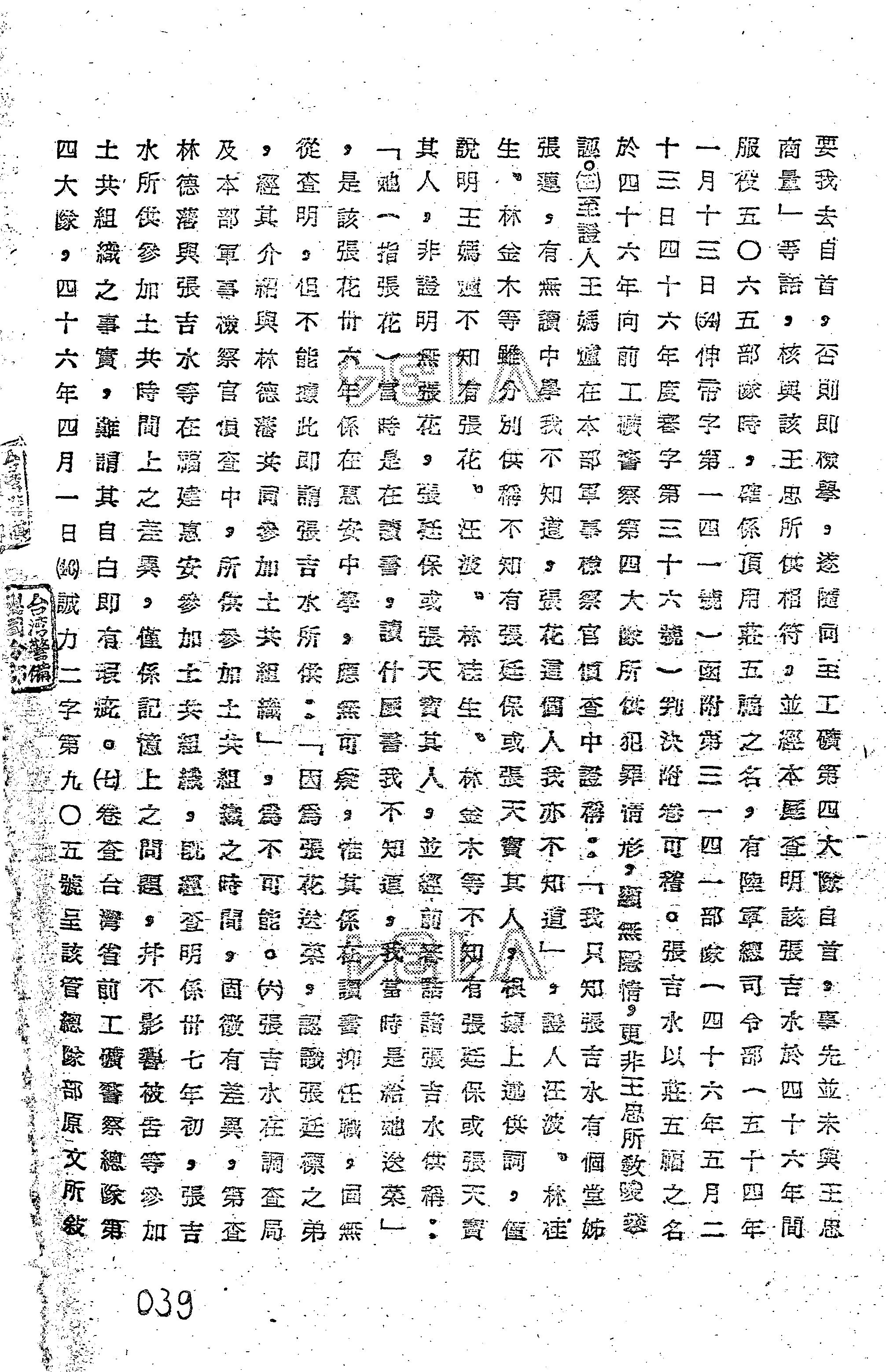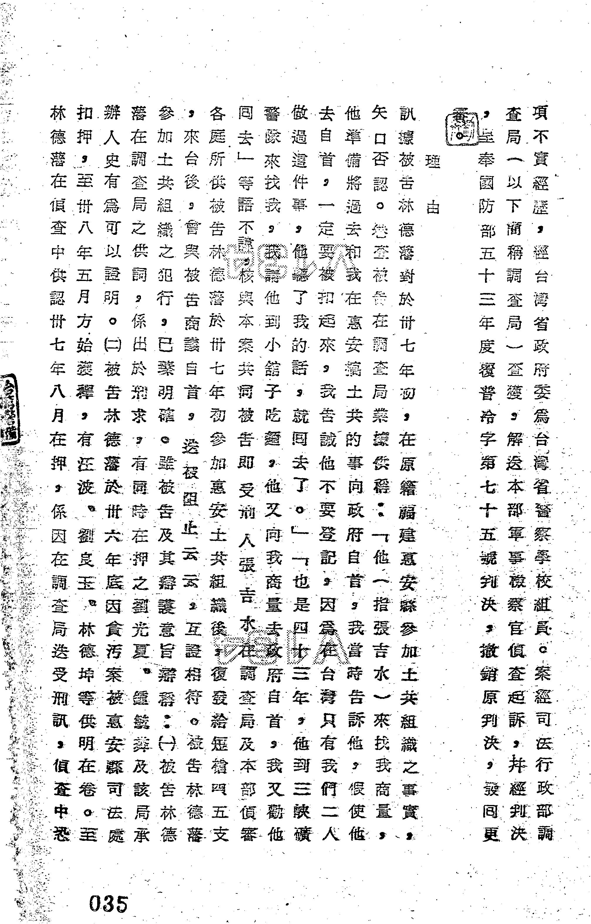 - 審理機關:臺灣警備總司令部