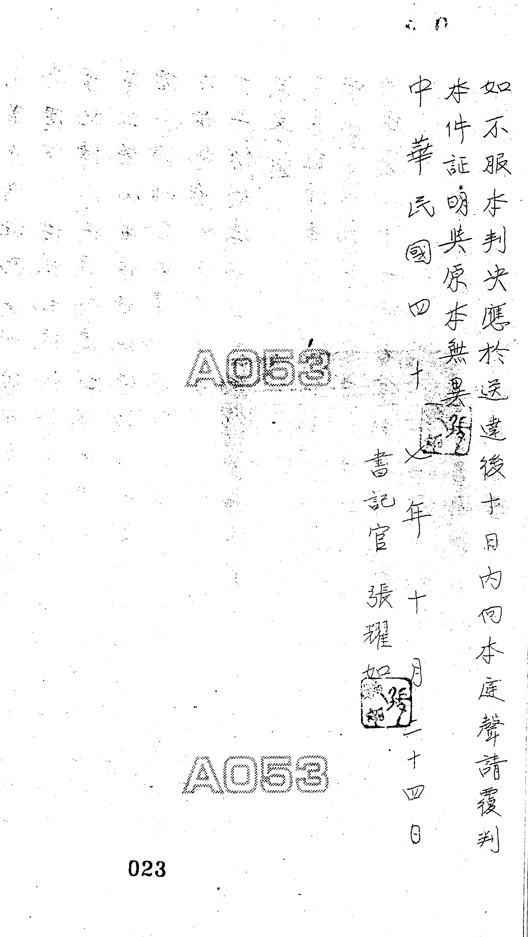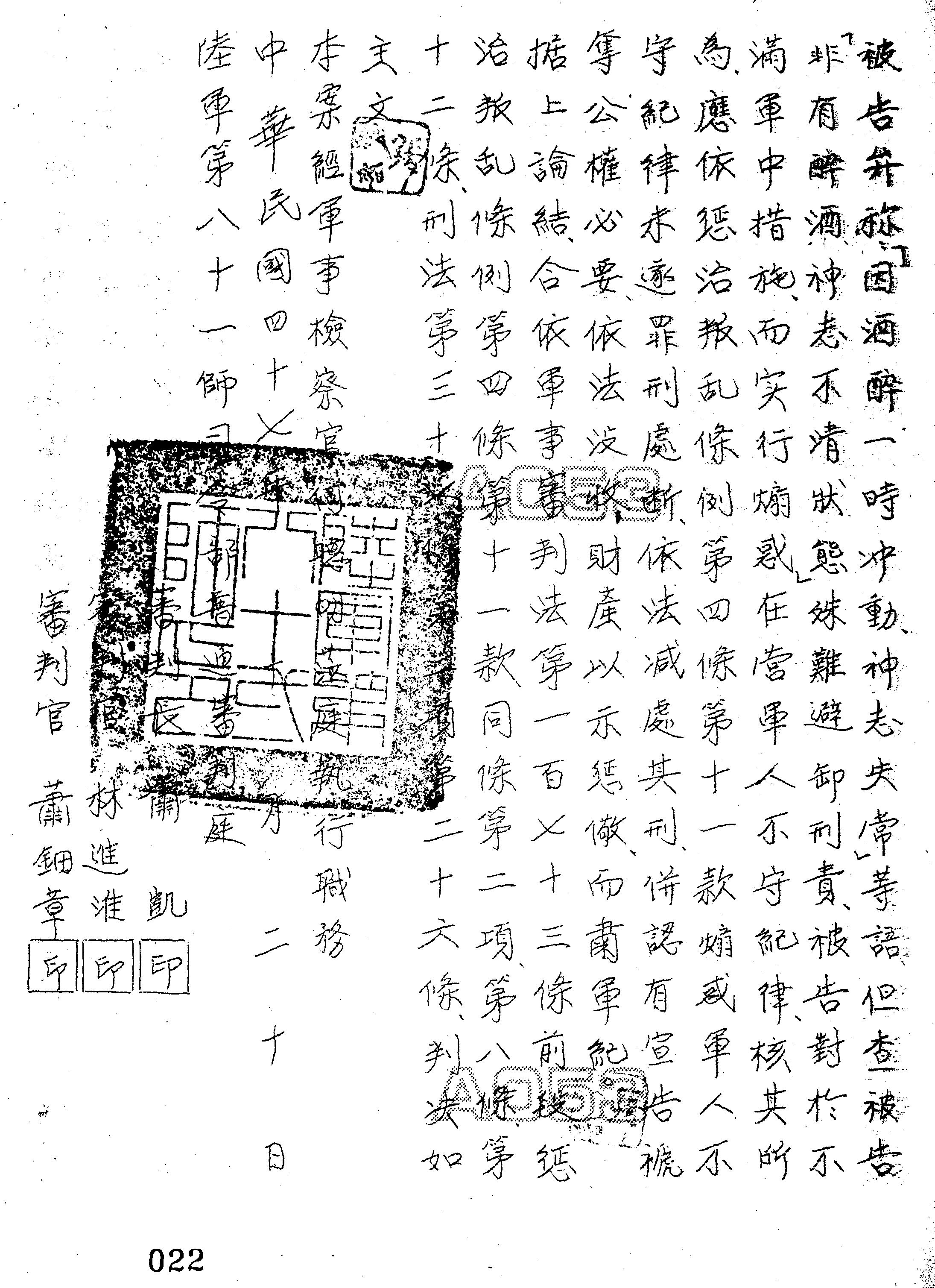 陸軍第八十一師司令部47年鏡審字第0072號判決書