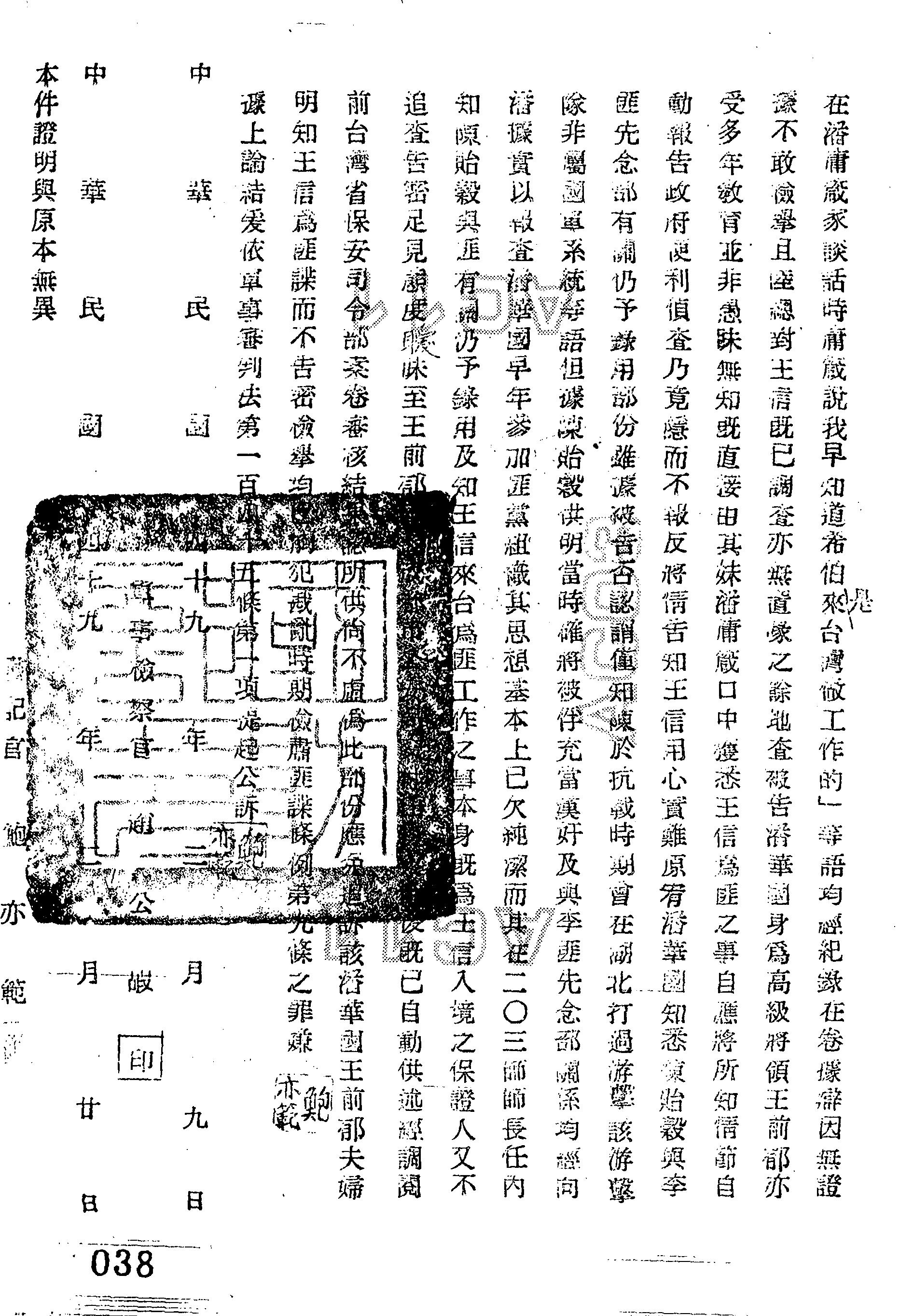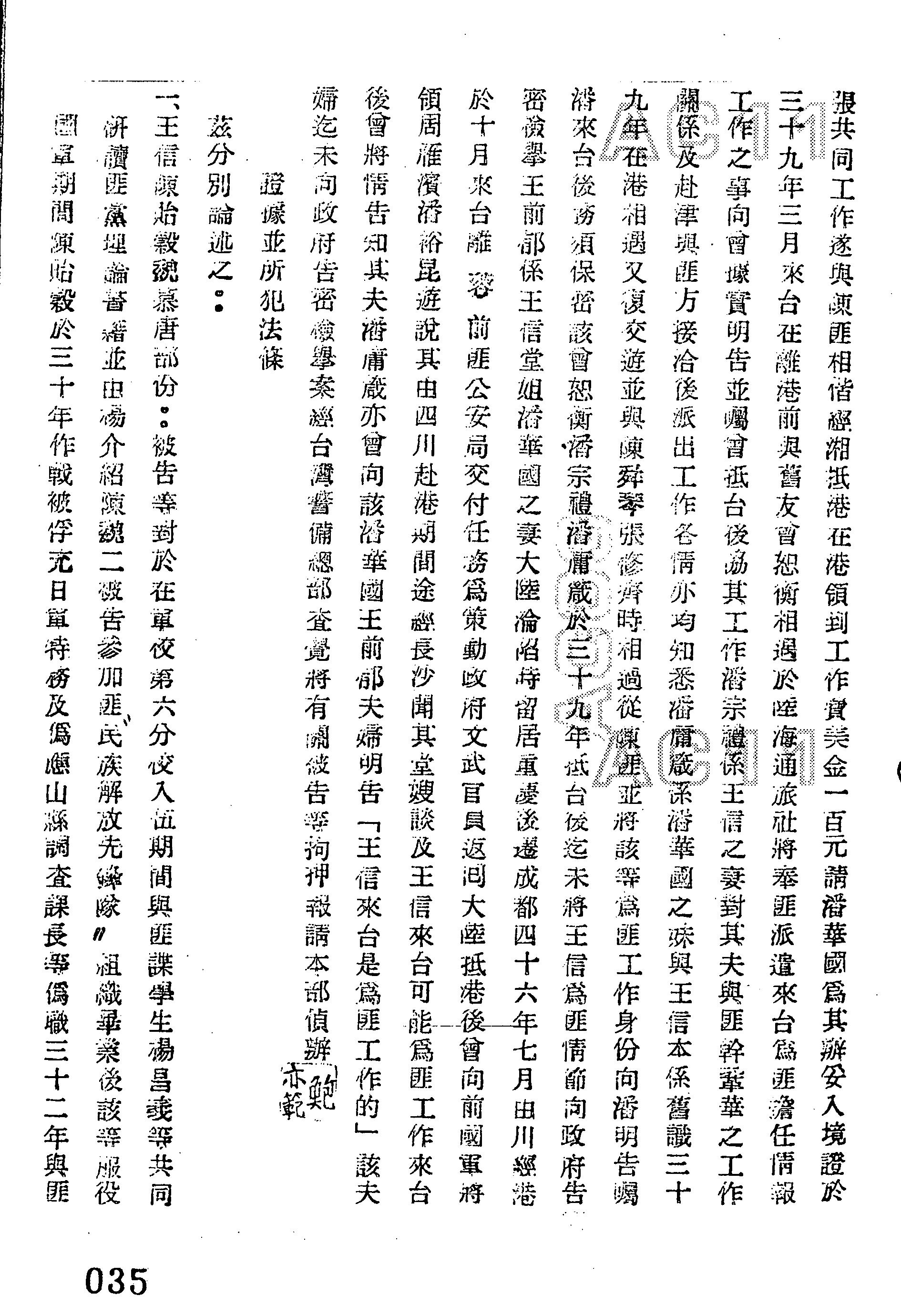 裁判書主文/要旨:王信等因叛亂等罪嫌一案業經偵查終結認應提起公訴。