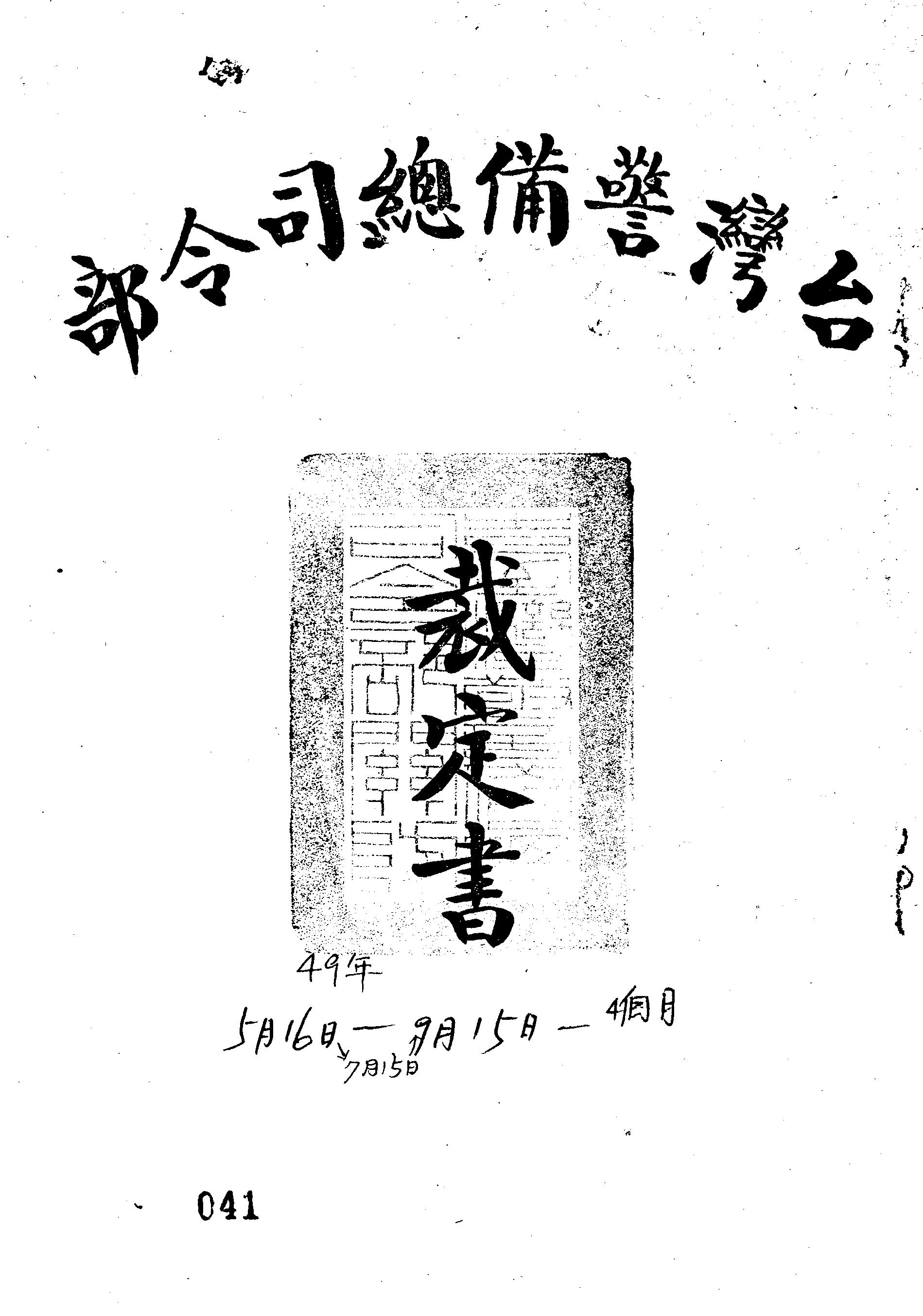 審理機關:臺灣警備總司令部