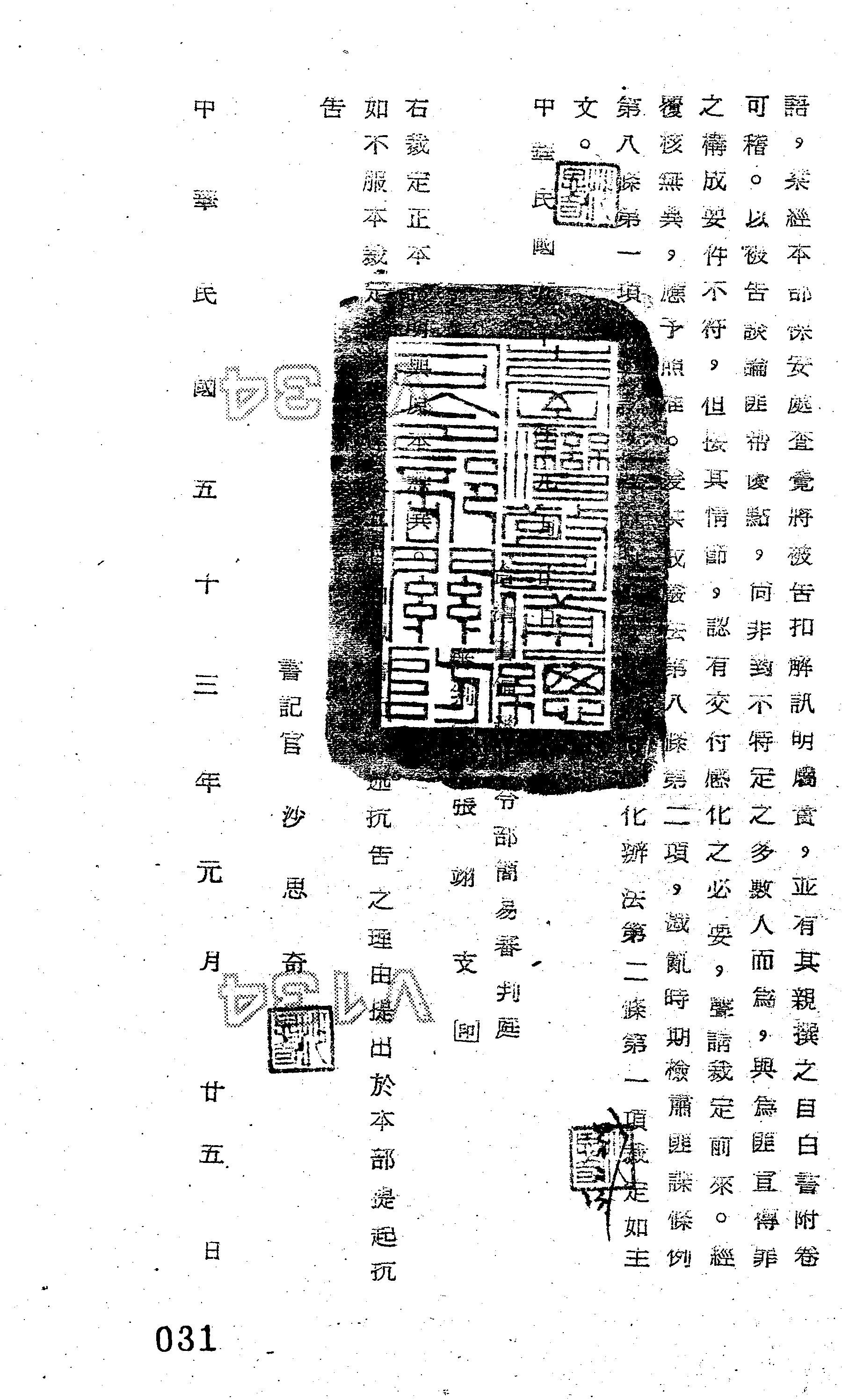 臺灣警備總司令部53年警審聲字第0001號裁定書