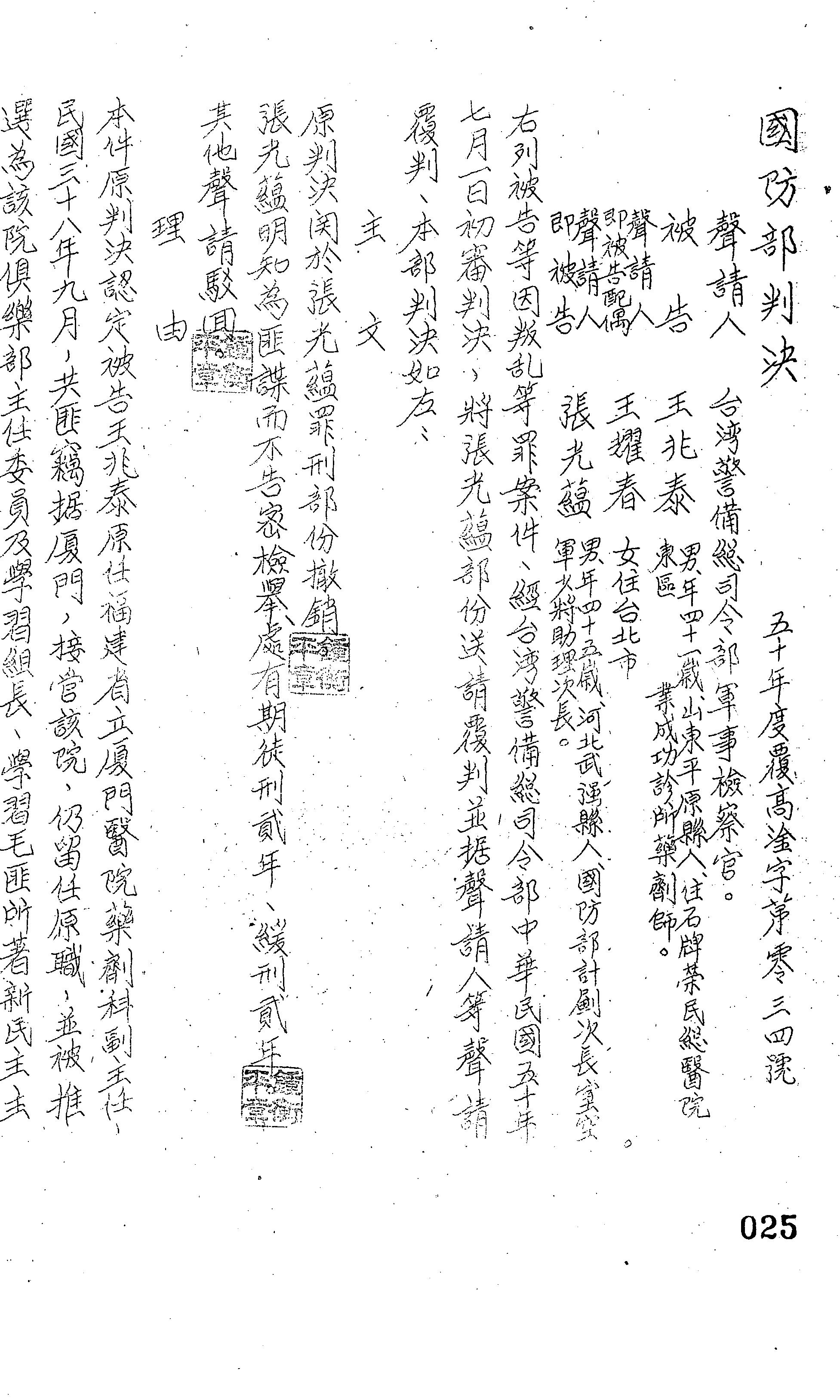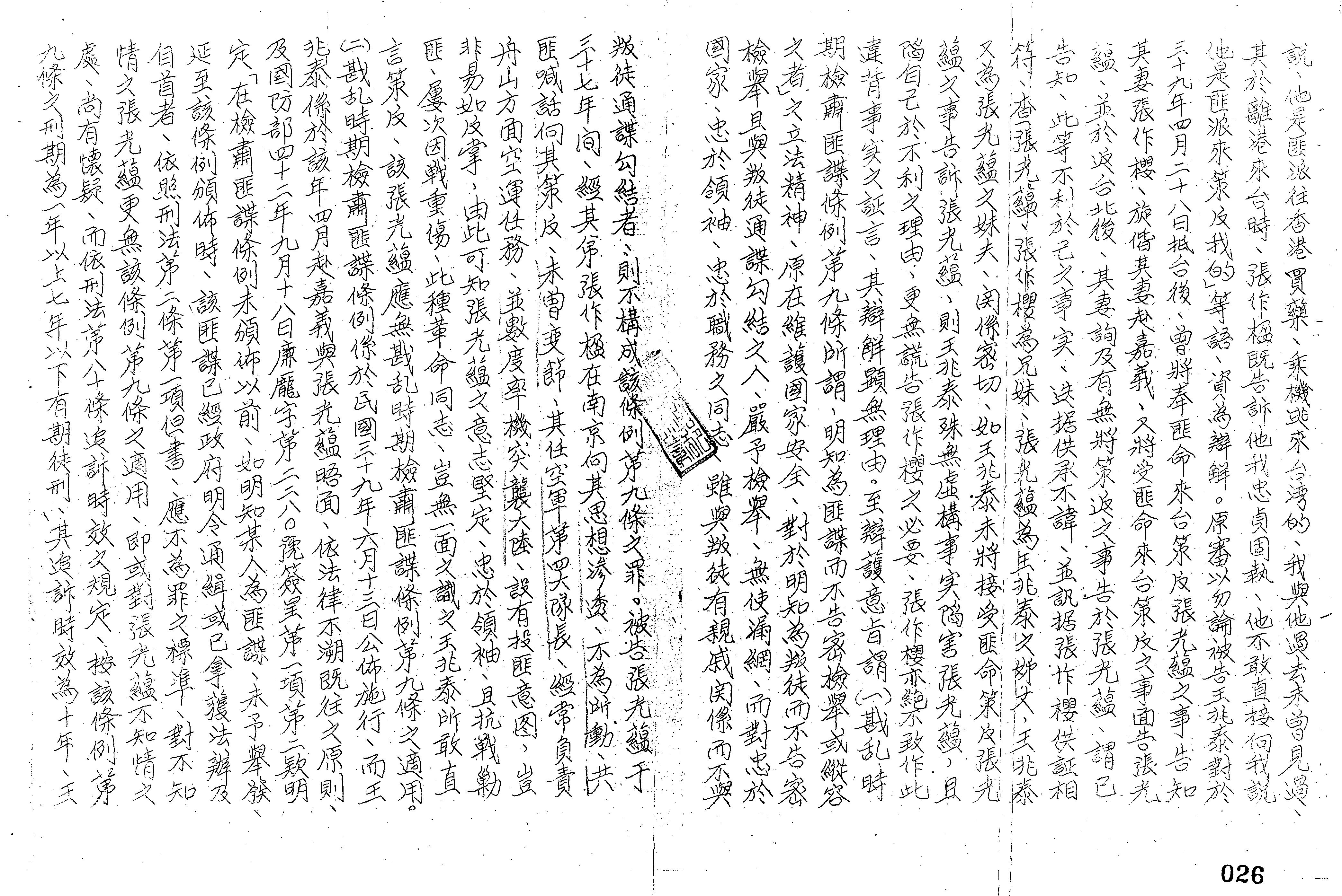 裁判書主文/要旨:原判決關於張光蘊罪刑部分撤銷。張光蘊「明知為匪諜而不告密檢舉」處有期徒刑2年,緩刑2年。其他聲請駁回。