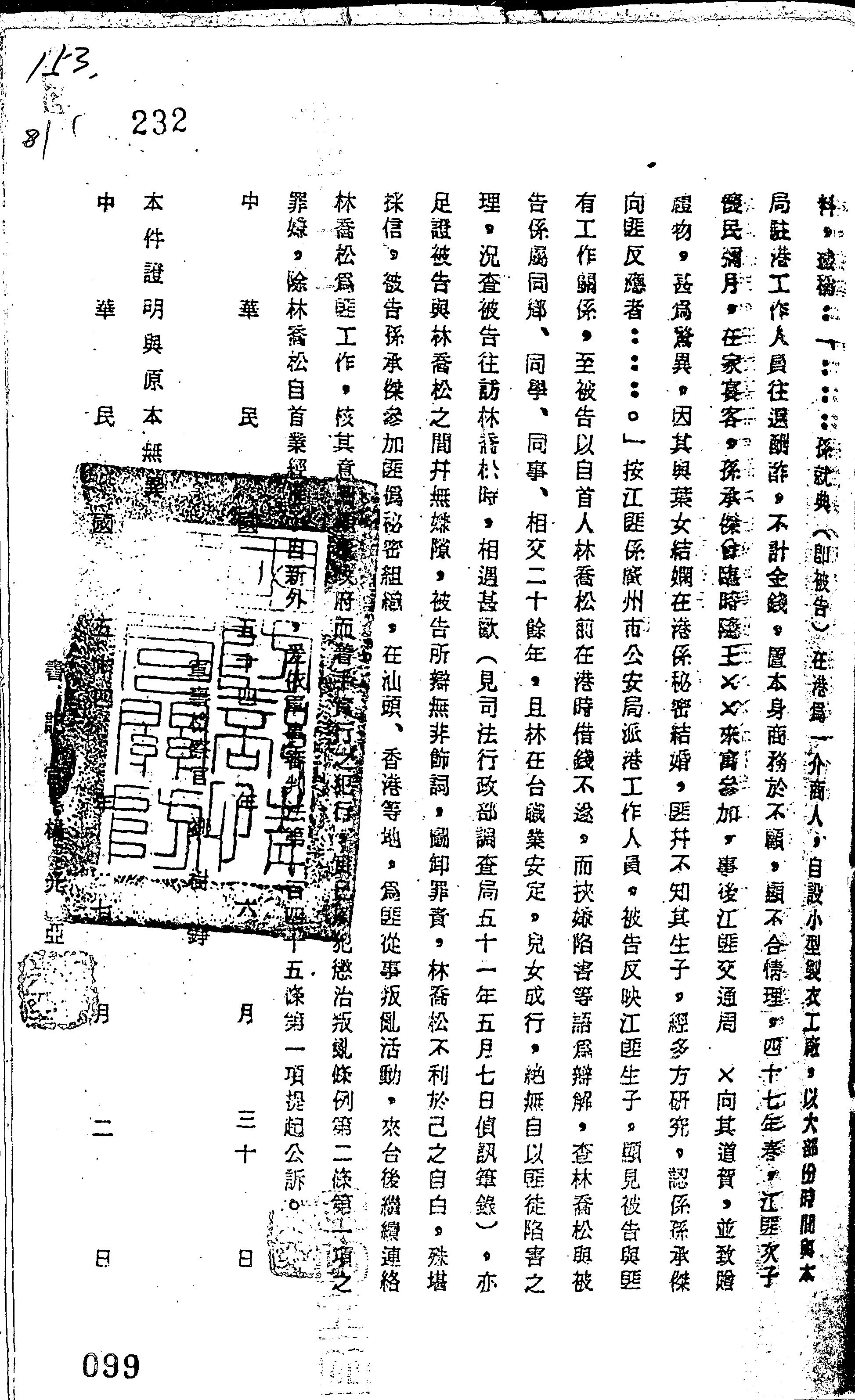 國防部情報局54年新法起字第0153號軍事檢察官起訴書
