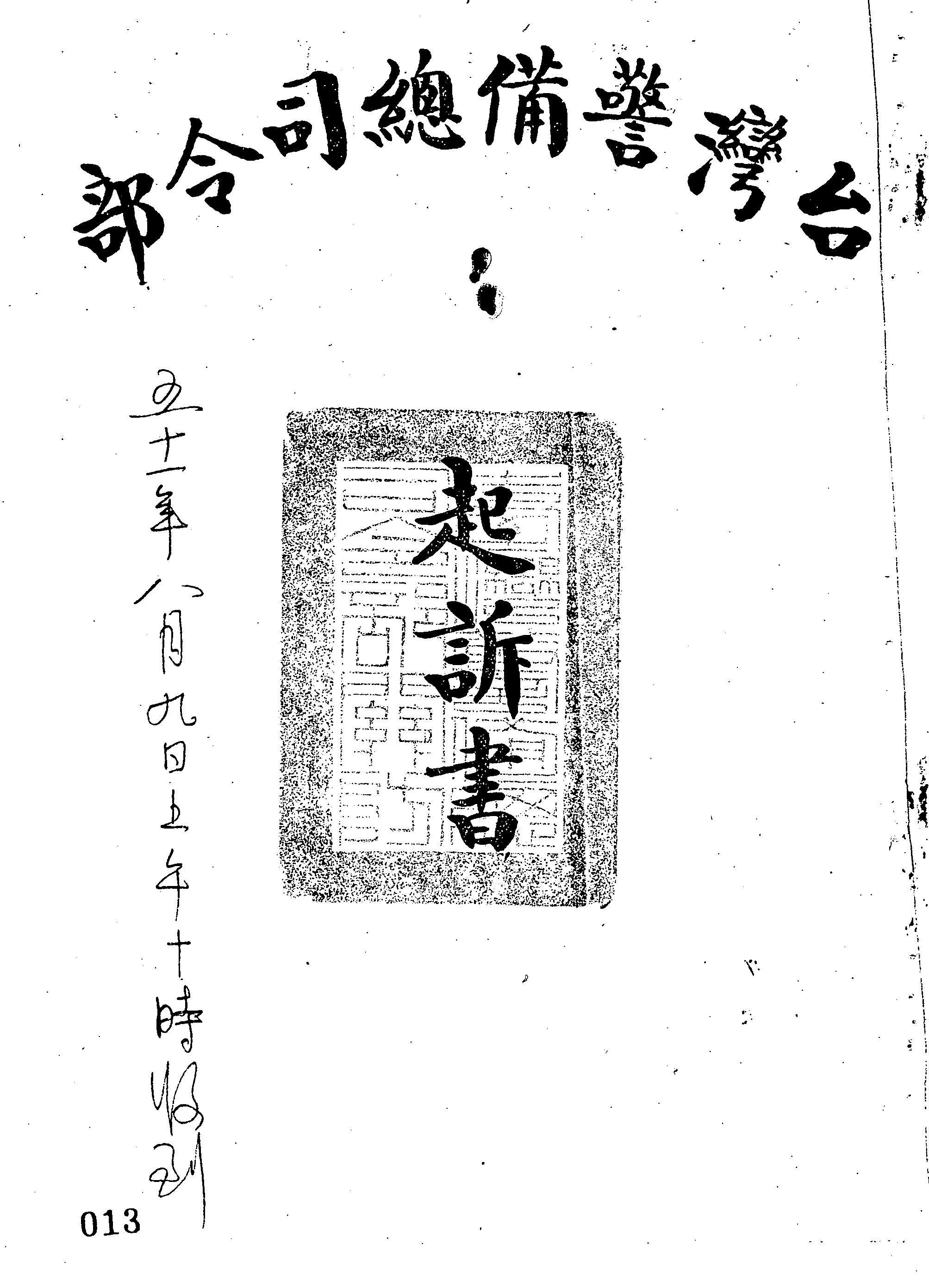 臺灣警備總司令部51年晴普字第0659號起訴書